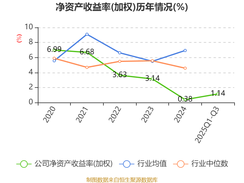 盈利能力方面, 2025年前三季度公司加权平均净资产收益率为1.14%,同比下降0.06个百分点。公司2025年前三季度投入资本回报率为1.59%,较上年同期上升0.52个百分点。