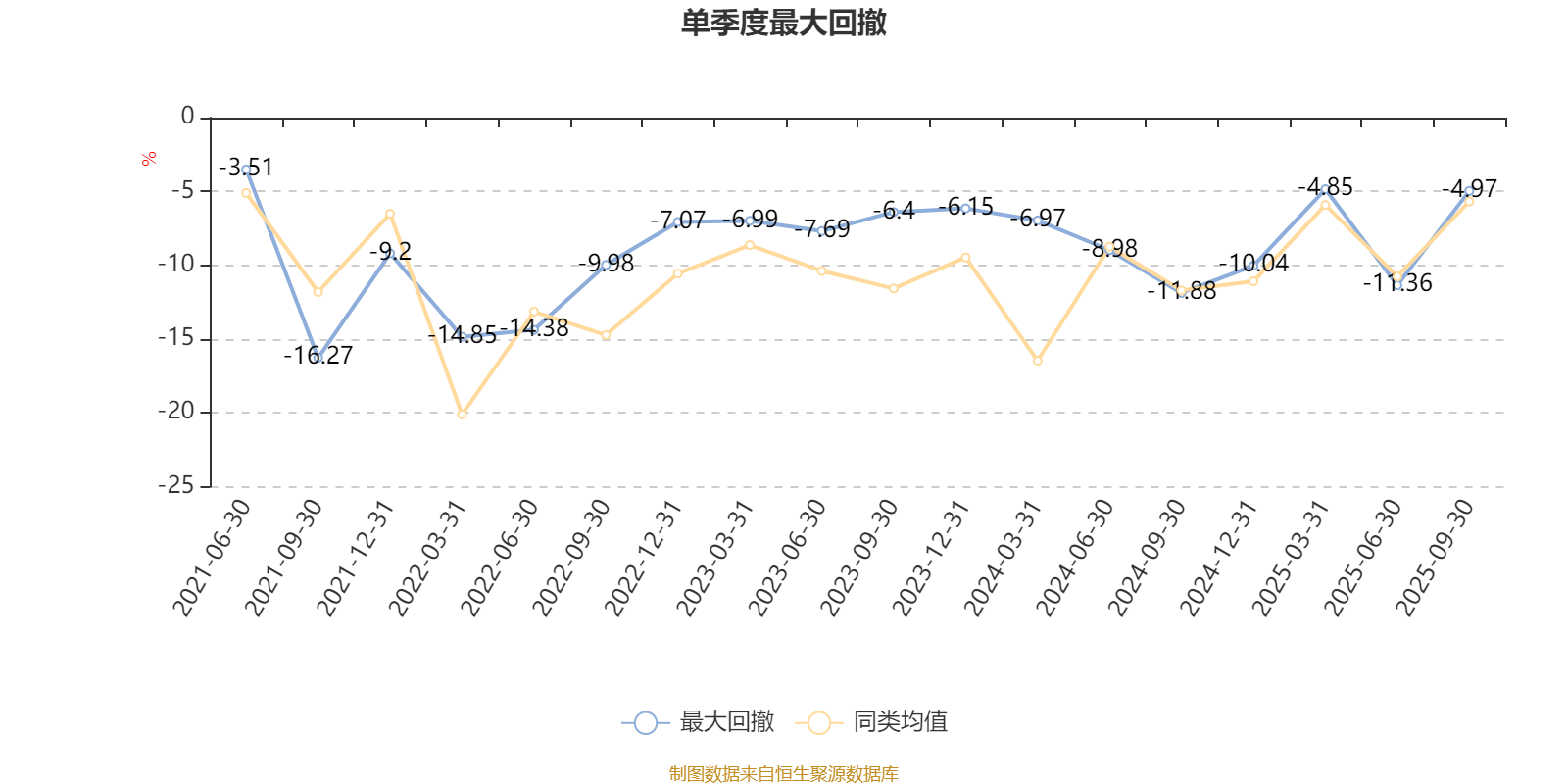 截至10月29日,基金近三年最大回撤为18.06%,同类可比基金排名11/513。单季度最大回撤出现在2021年三季度,为16.27%。