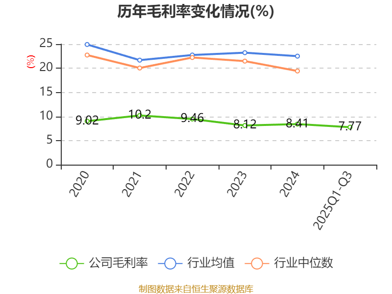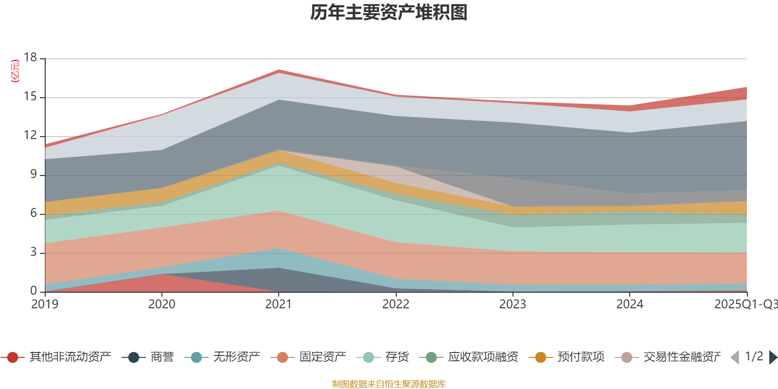 资产重大变化方面,截至2025年三季度末,公司预付款项较上年末增加150.27%,占公司总资产比重上升3.65个百分点;在建工程合计较上年末增加250.44%,占公司总资产比重上升3个百分点;应收款项融资较上年末减少36.05%,占公司总资产比重下降2.96个百分点;固定资产较上年末减少2.72%,占公司总资产比重下降1.99个百分点。