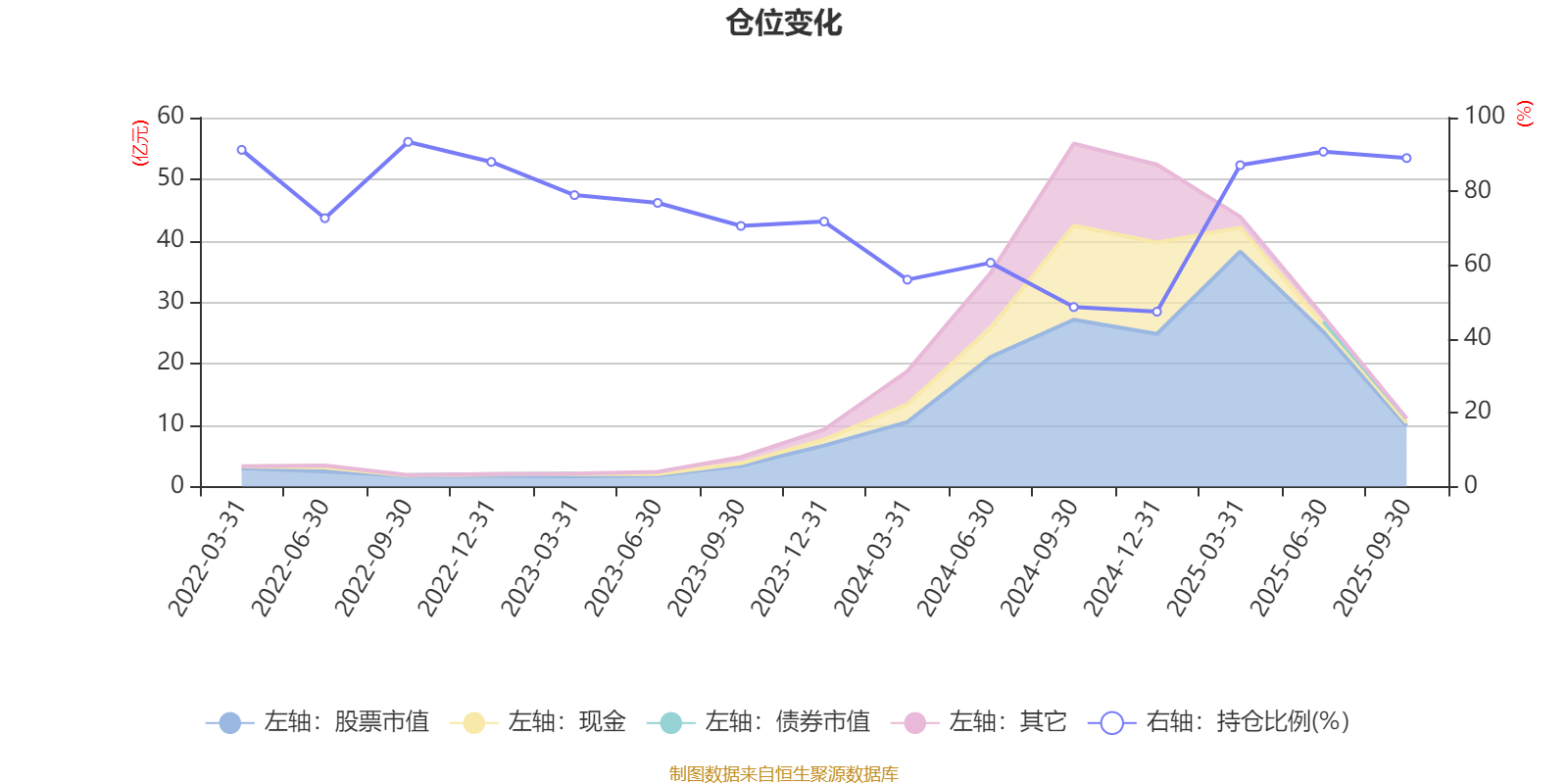 据定期报告数据统计,近三年平均股票仓位为72.17%,同类平均为87.62%。2022年三季度末基金达到93.42%的最高仓位,2024年末最低,为47.4%。