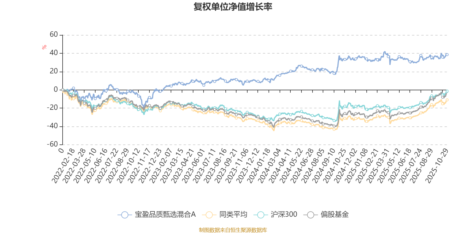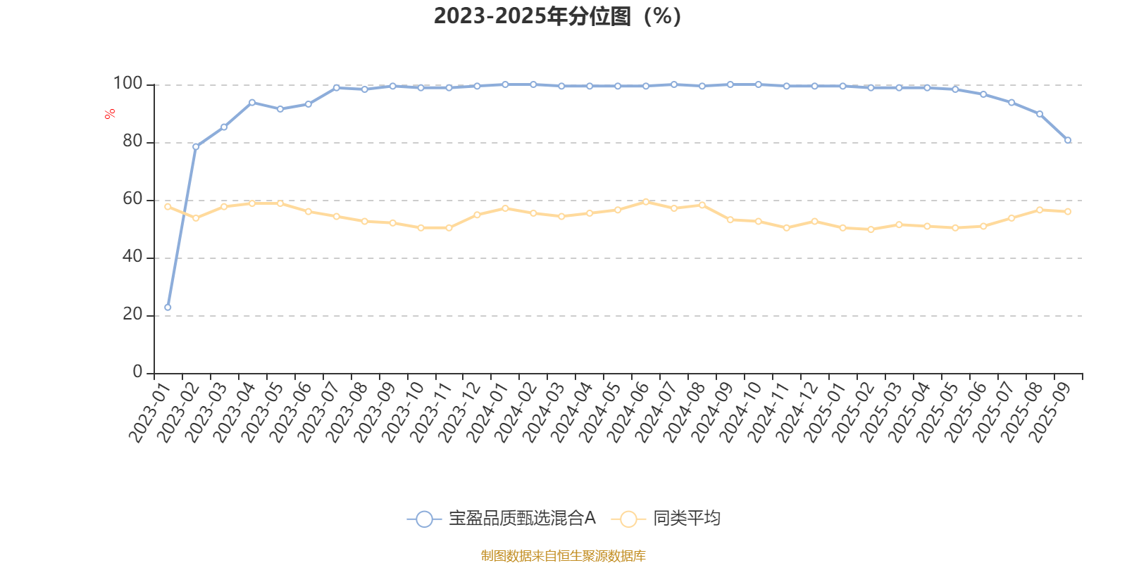 截至10月29日,宝盈品质甄选混合A近三个月复权单位净值增长率为2.03%,位于同类可比基金172/185;近半年复权单位净值增长率为4.47%,位于同类可比基金185/185;近一年复权单位净值增长率为4.03%,位于同类可比基金176/181;近三年复权单位净值增长率为71.52%,位于同类可比基金12/175。