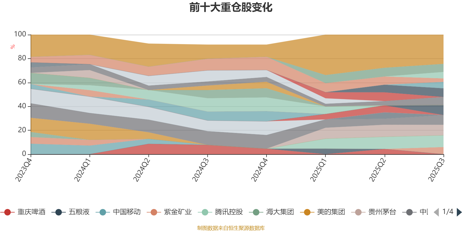 该基金持股集中度较高,近2年前十大重仓股集中度长期超过60%。截至2025年三季度末,基金十大重仓股分别是腾讯控股、贵州茅台、匠心家居、中国财险、川投能源、美团-W、广深铁路股份、紫金矿业、新城发展、华友钴业。
