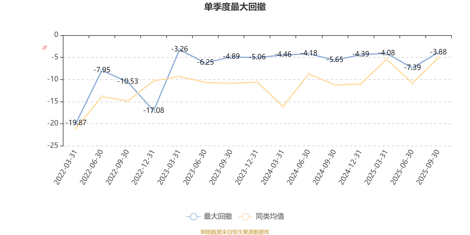 截至10月29日,基金近三年最大回撤为10.38%,同类可比基金排名1/176。单季度最大回撤出现在2022年一季度,为19.87%。