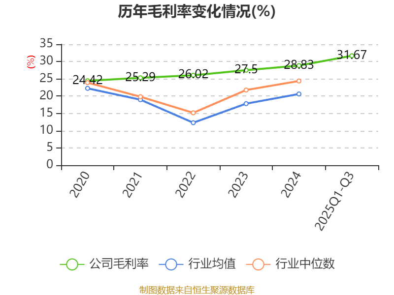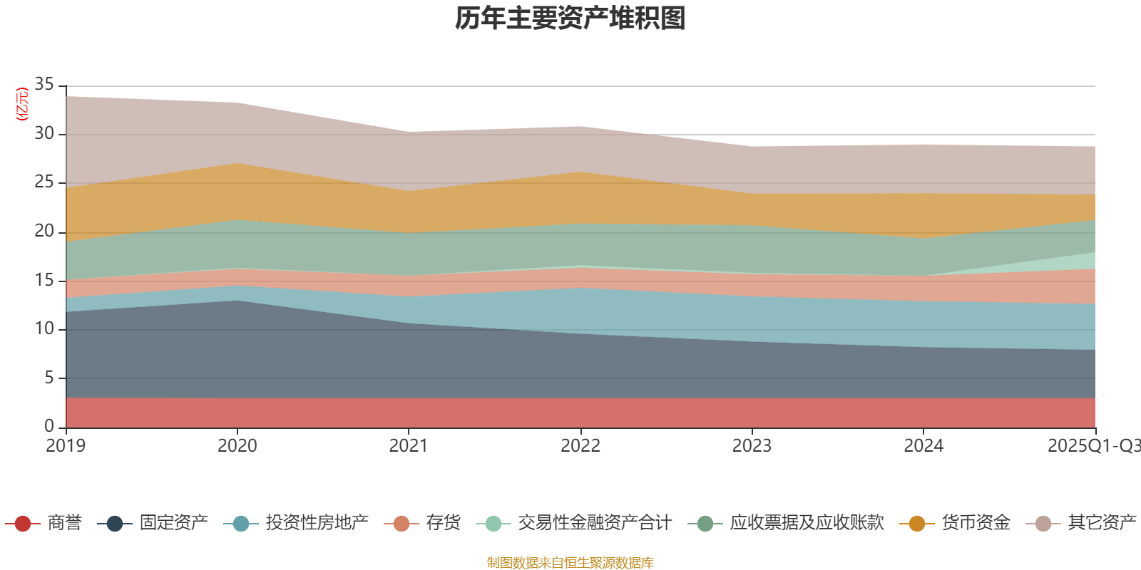 资产重大变化方面,截至2025年三季度末,公司货币资金较上年末减少43.34%,占公司总资产比重下降6.86个百分点;交易性金融资产合计占公司总资产的5.88%,上年末为0;存货较上年末增加38%,占公司总资产比重上升3.51个百分点;应收票据及应收账款较上年末减少13.47%,占公司总资产比重下降1.7个百分点。