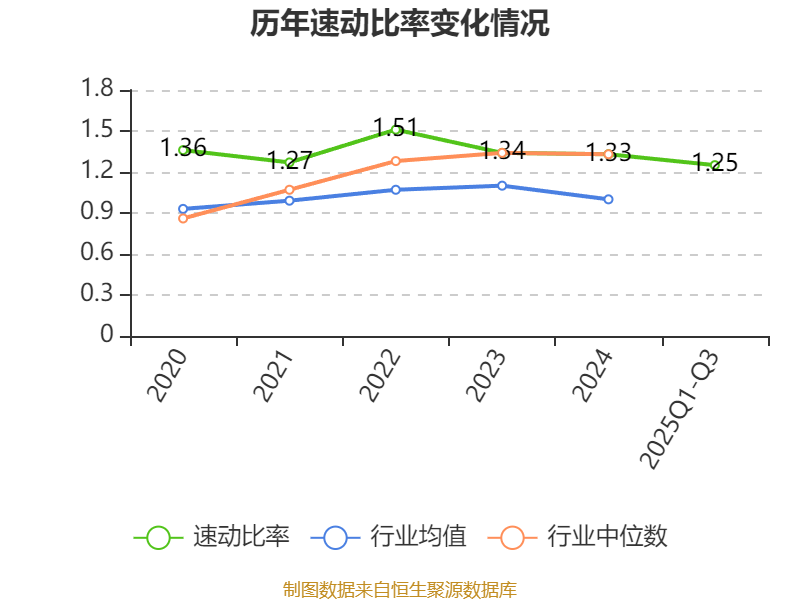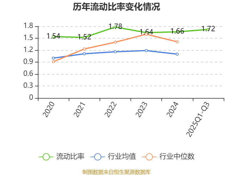 2025年前三季度,公司流动比率为1.72,速动比率为1.25。