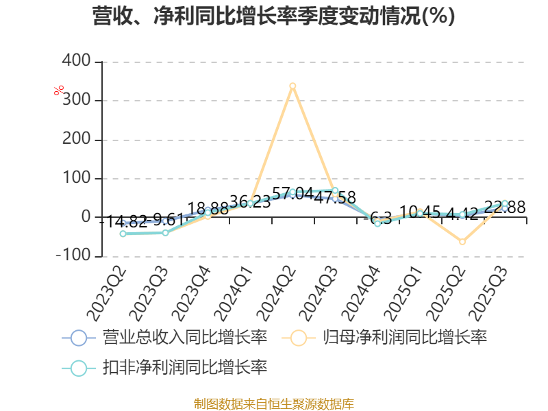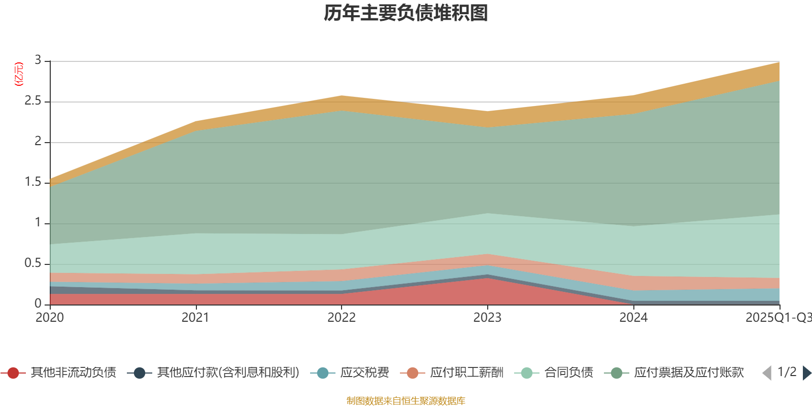负债重大变化方面,截至2025年三季度末,公司应付票据及应付账款较上年末增加18.89%,占公司总资产比重上升1.04个百分点;合同负债较上年末增加28.18%,占公司总资产比重上升0.83个百分点;应付职工薪酬较上年末减少29.12%,占公司总资产比重下降0.42个百分点;长期递延收益较上年末减少8.2%,占公司总资产比重下降0.13个百分点。