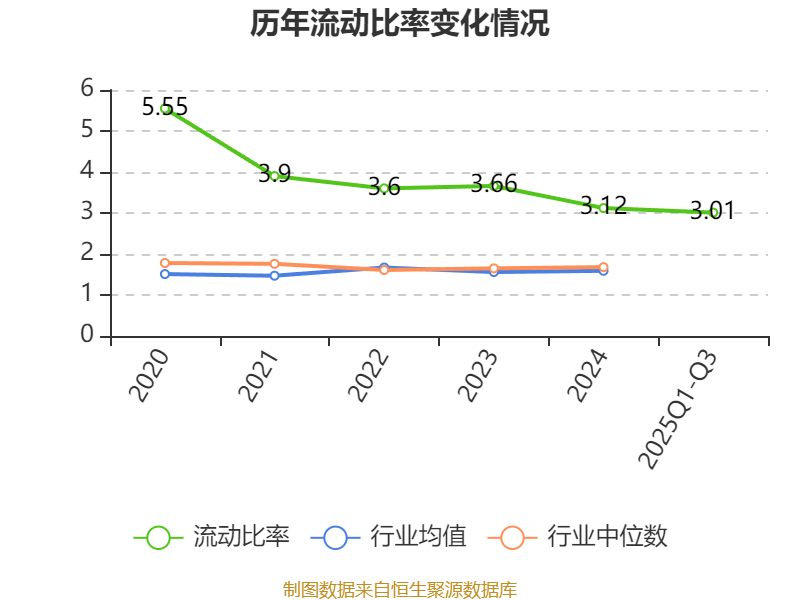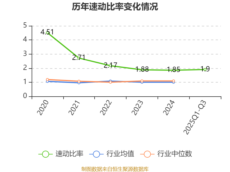 2025年前三季度,公司流动比率为3.01,速动比率为1.9。