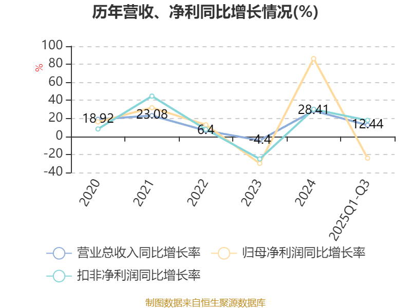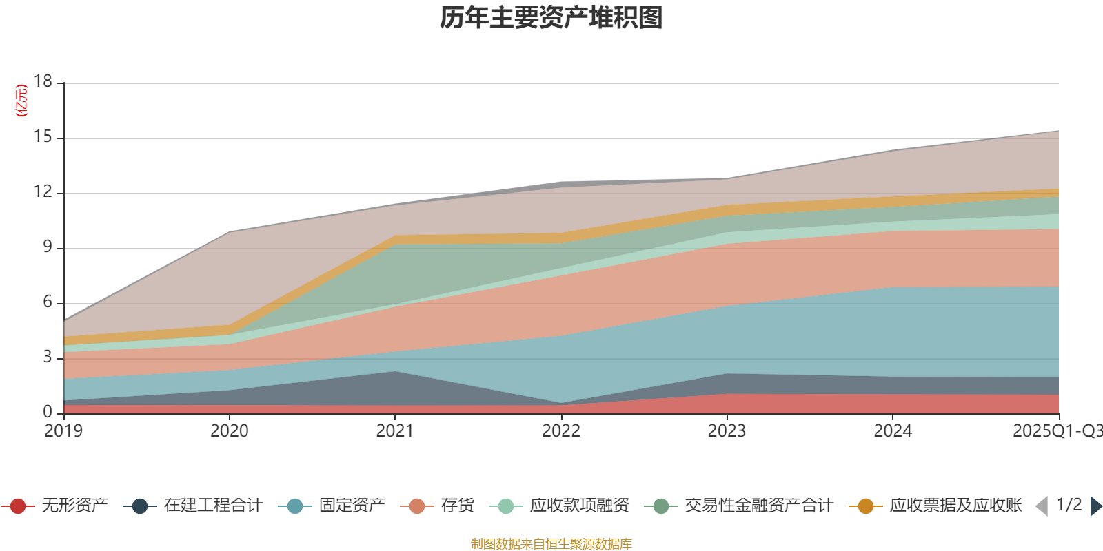 资产重大变化方面,截至2025年三季度末,公司货币资金较上年末增加26.82%,占公司总资产比重上升3.11个百分点;固定资产较上年末增加0.58%,占公司总资产比重下降2.13个百分点;应收款项融资较上年末增加59.65%,占公司总资产比重上升1.73个百分点;应收票据及应收账款较上年末减少22.83%,占公司总资产比重下降1.12个百分点。