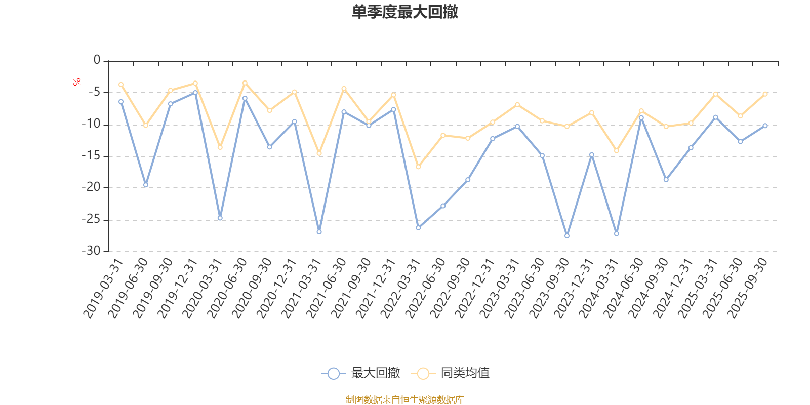通过所选区间该基金净值增长率分位图,可以观察该基金与同类基金业绩比较情况。图为坐标原点到区间内某时点的净值增长率在同类基金中的分位数。