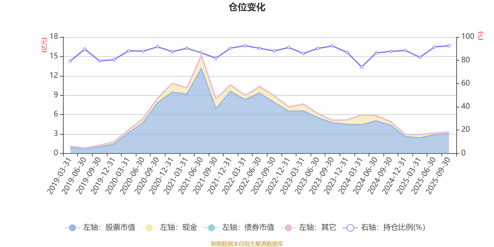 据定期报告数据统计,近三年平均股票仓位为87.47%,同类平均为72.35%。2022年一季度末基金达到92.54%的最高仓位,2024年一季度末最低,为74.34%。