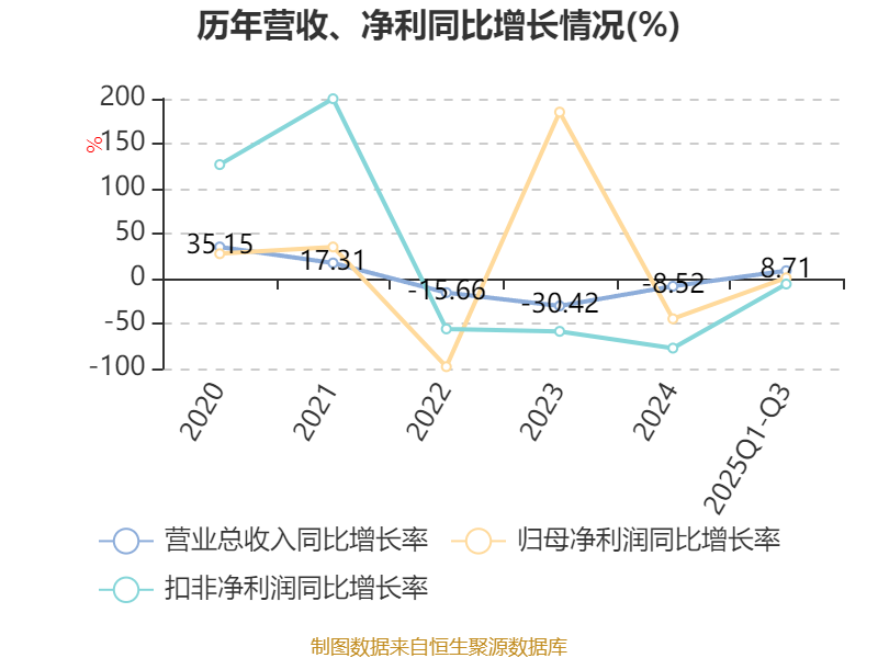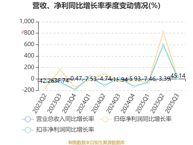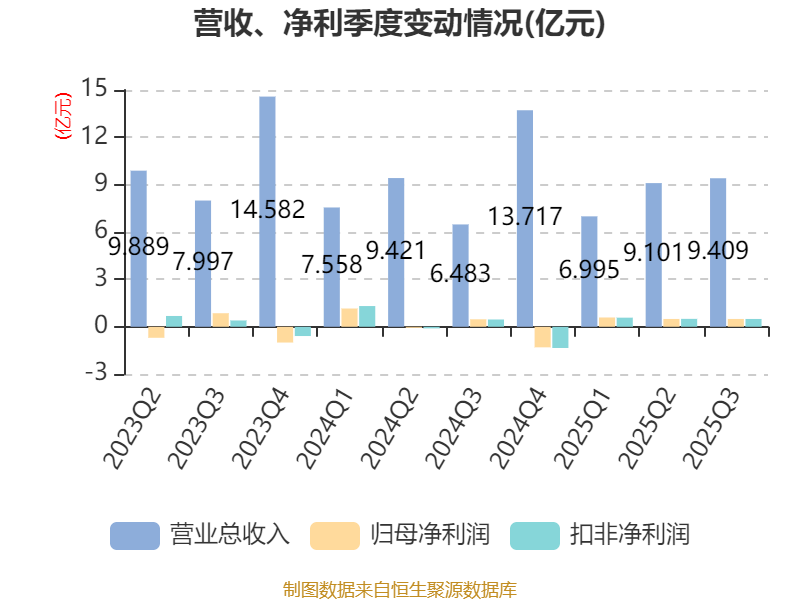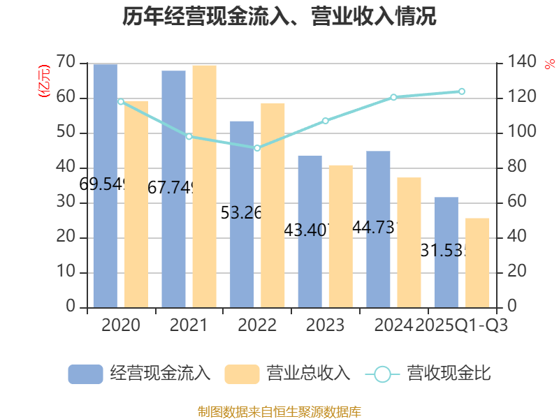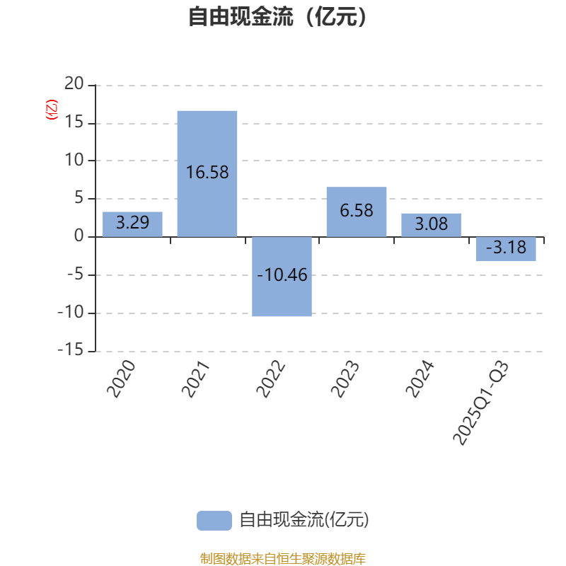 2025年前三季度,公司经营活动现金流净额为-3.89亿元,同比减少1561.44万元;筹资活动现金流净额-1351.14万元,同比增加4.22亿元;投资活动现金流净额4113.26万元,上年同期为4.95亿元。