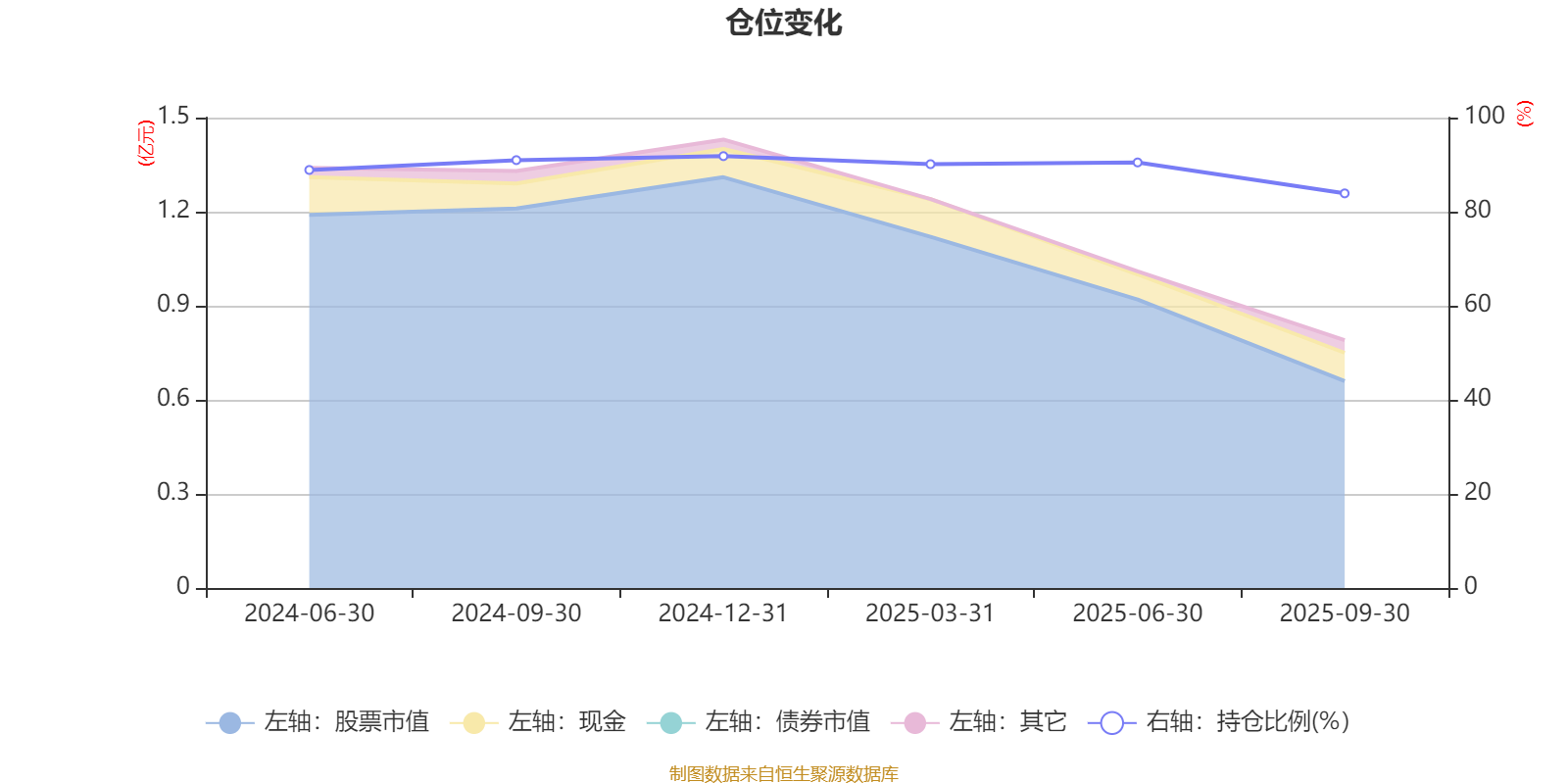 据定期报告数据统计,成立以来平均股票仓位为89.35%,同类平均为83.73%。2024年末基金达到91.81%的最高仓位,2025年三季度末最低,为83.89%。
