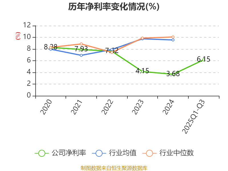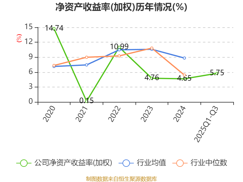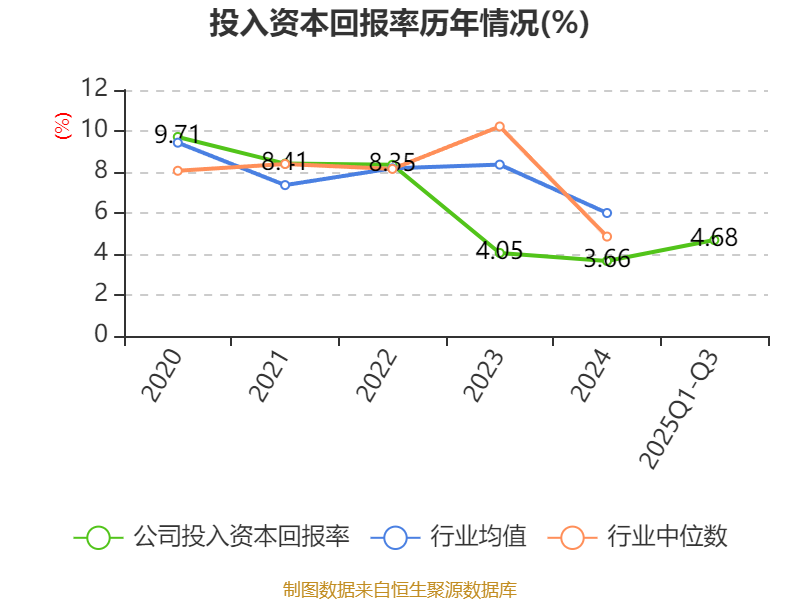 盈利能力方面, 2025年前三季度公司加权平均净资产收益率为5.75%,同比上升0.09个百分点。公司2025年前三季度投入资本回报率为4.68%,较上年同期上升0.36个百分点。