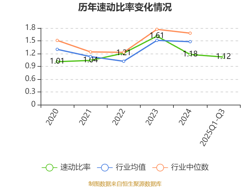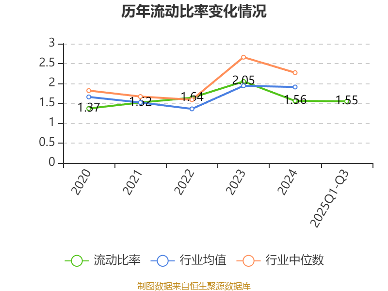 2025年前三季度,公司流动比率为1.55,速动比率为1.12。