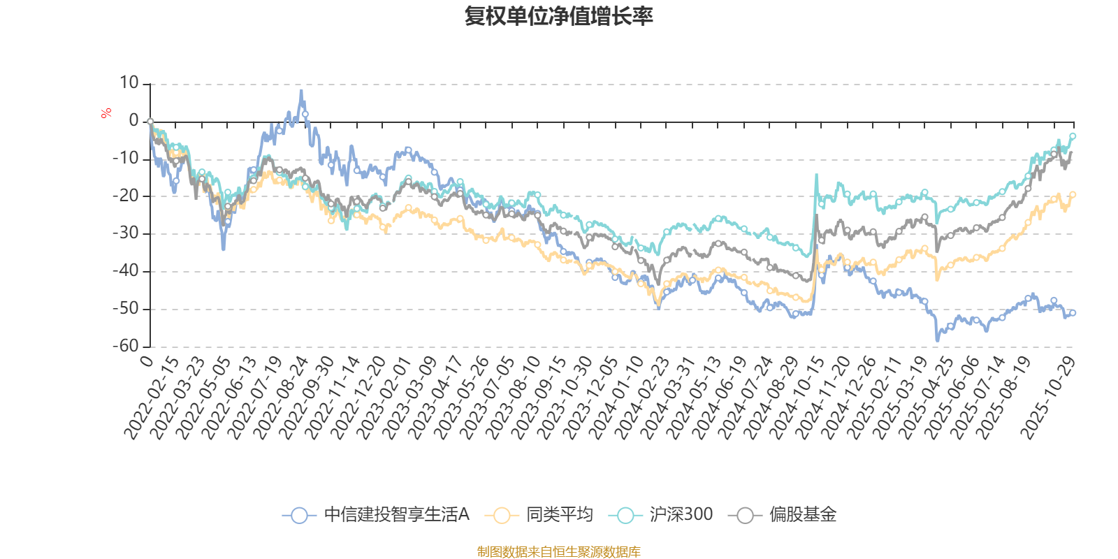 截至10月29日,中信建投智享生活A近三个月复权单位净值增长率为-3.18%,位于同类可比基金680/689;近半年复权单位净值增长率为9.59%,位于同类可比基金636/688;近一年复权单位净值增长率为-21.34%,位于同类可比基金655/657;近三年复权单位净值增长率为-41.87%,位于同类可比基金362/364。