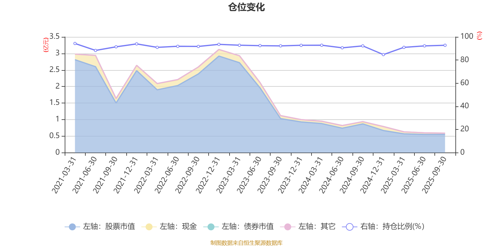 据定期报告数据统计,近三年平均股票仓位为91.68%,同类平均为83.73%。2021年一季度末基金达到94.33%的最高仓位,2024年末最低,为84.72%。