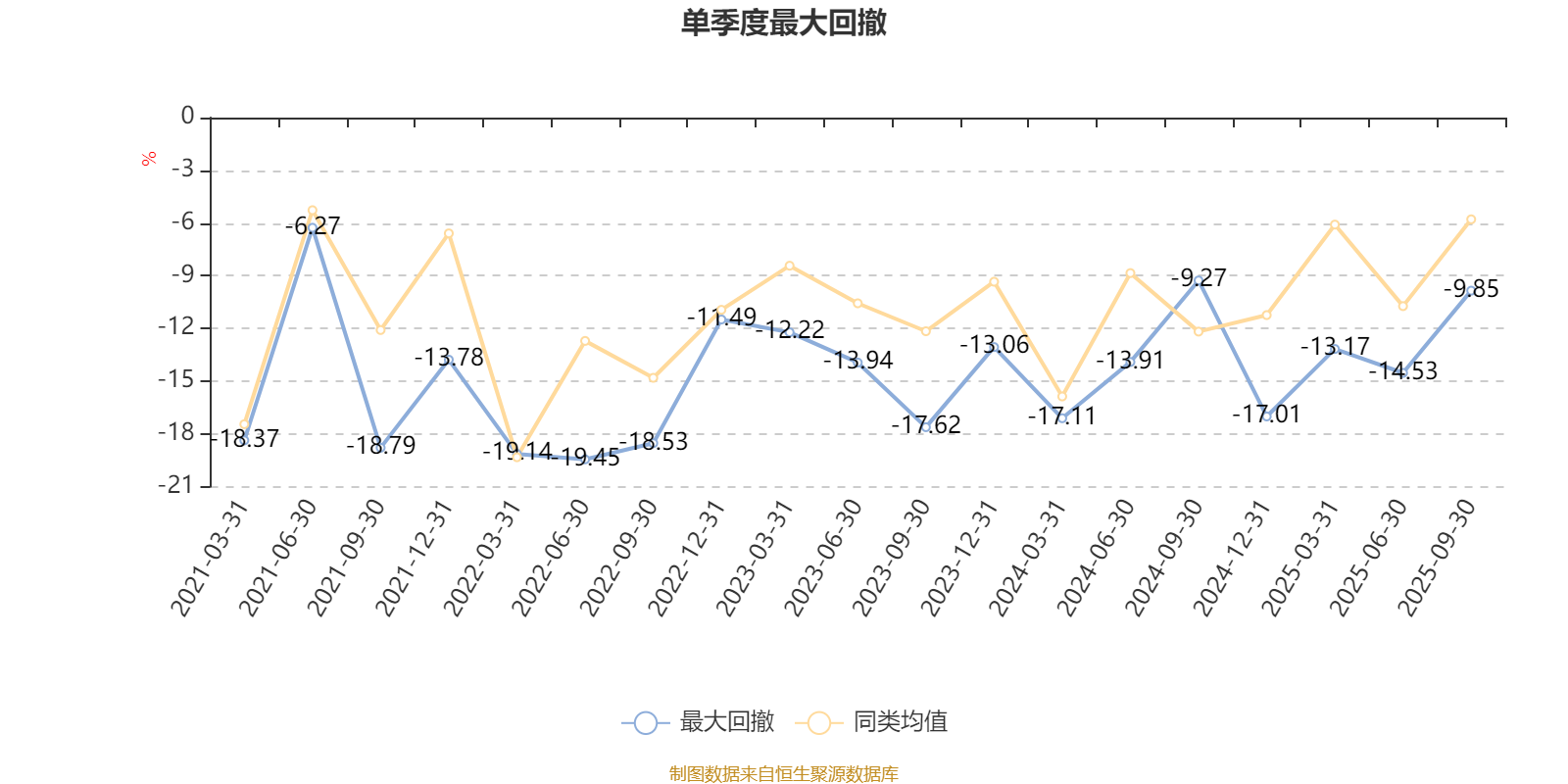 截至10月29日,基金近三年最大回撤为55.76%,同类可比基金排名349/363。单季度最大回撤出现在2022年二季度,为19.45%。