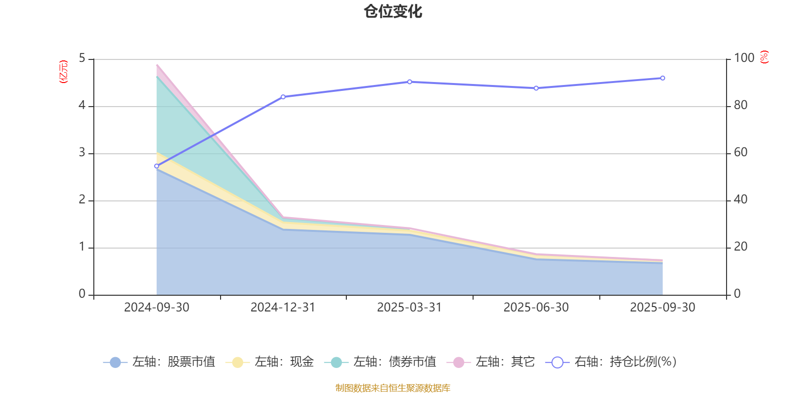 据定期报告数据统计,成立以来平均股票仓位为81.66%,同类平均为83.73%。2025年三季度末基金达到91.9%的最高仓位,2024年三季度末最低,为54.58%。