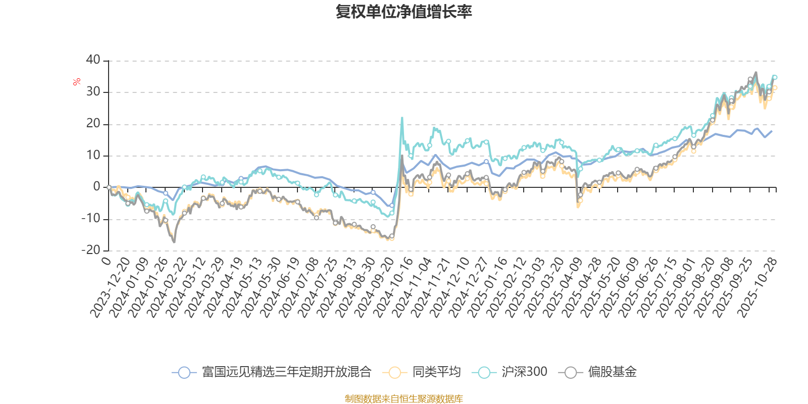 截至10月24日,富国远见精选三年定期开放混合近三个月复权单位净值增长率为4.29%,位于同类可比基金535/621;近半年复权单位净值增长率为9.76%,位于同类可比基金576/619;近一年复权单位净值增长率为11.20%,位于同类可比基金526/611。