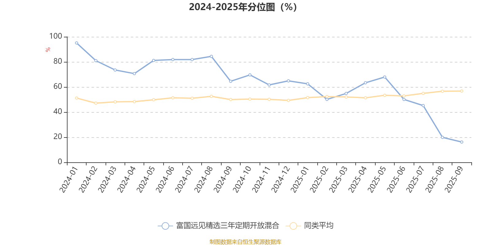通过所选区间该基金净值增长率分位图,可以观察该基金与同类基金业绩比较情况。图为坐标原点到区间内某时点的净值增长率在同类基金中的分位数。