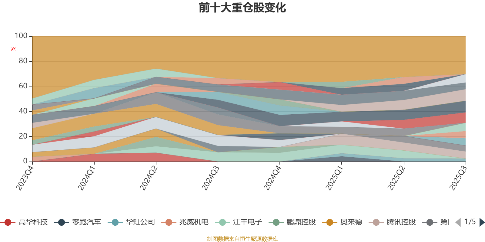 该基金持股集中度较高。截至2025年三季度末,基金重仓股分别是华虹半导体、海光信息、芯源微、快手-W、兆易创新、生益科技、金山办公、腾讯控股、联瑞新材、第四范式、华虹公司。