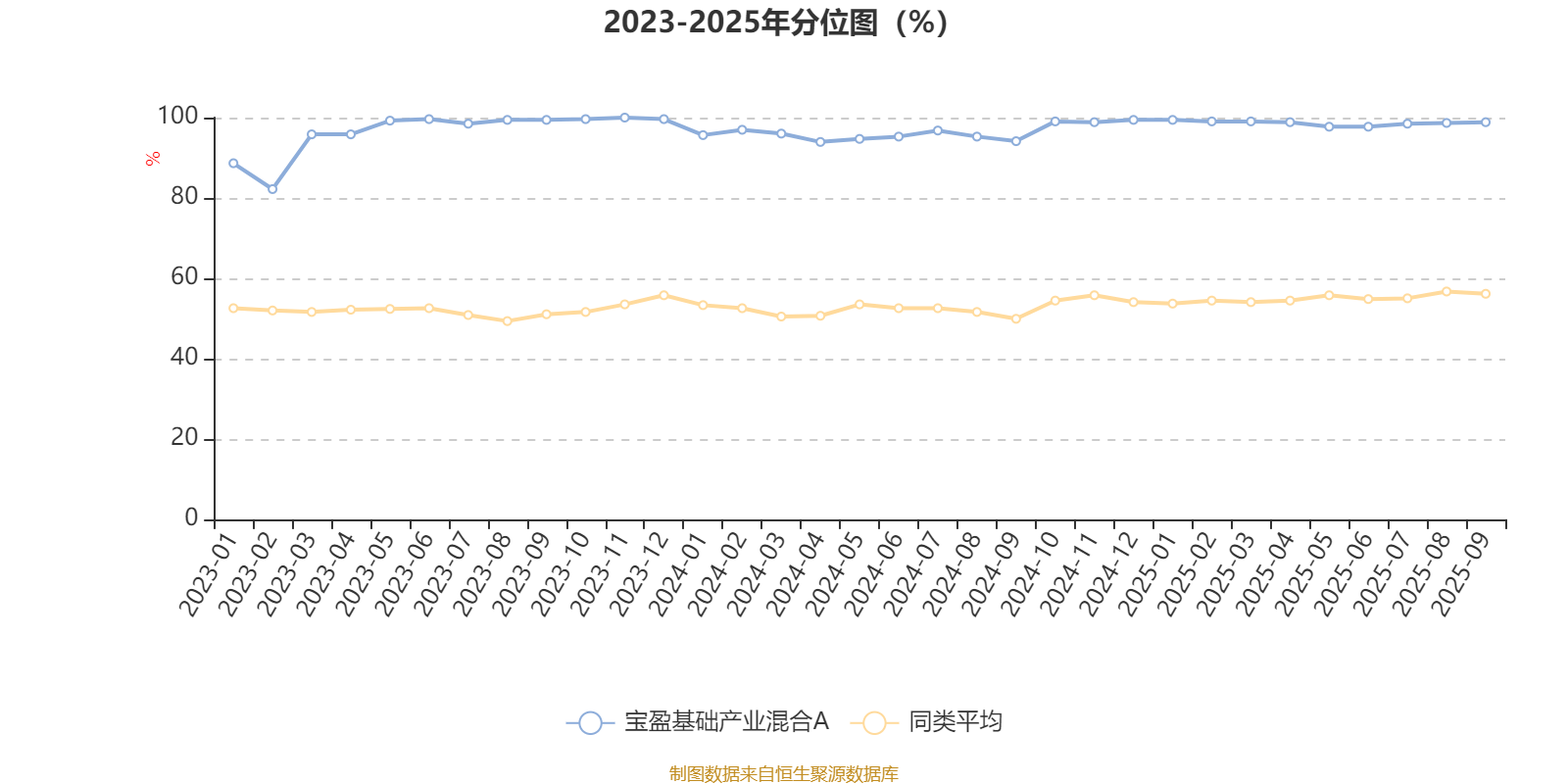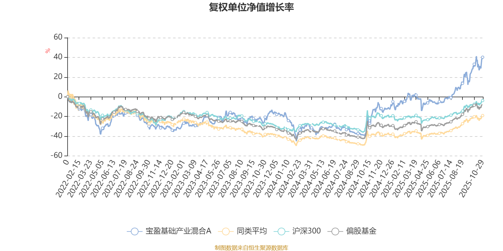 截至10月29日,宝盈基础产业混合A近三个月复权单位净值增长率为27.67%,位于同类可比基金93/621;近半年复权单位净值增长率为49.12%,位于同类可比基金96/621;近一年复权单位净值增长率为61.37%,位于同类可比基金60/611;近三年复权单位净值增长率为109.70%,位于同类可比基金10/518。