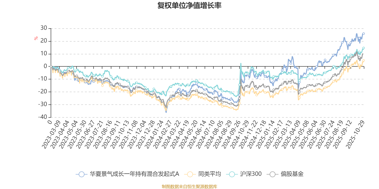 截至10月29日,华夏景气成长一年持有混合发起式A近三个月复权单位净值增长率为14.53%,位于同类可比基金307/621;近半年复权单位净值增长率为33.42%,位于同类可比基金263/621;近一年复权单位净值增长率为34.68%,位于同类可比基金259/611。
