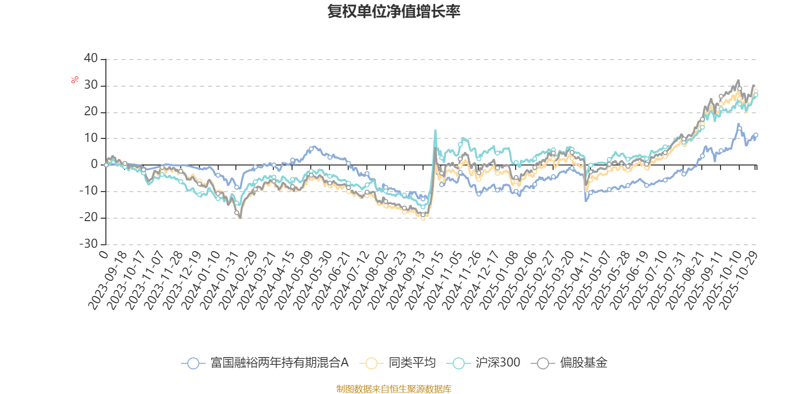 截至10月29日,富国融裕两年持有期混合A近三个月复权单位净值增长率为13.31%,位于同类可比基金345/621;近半年复权单位净值增长率为23.51%,位于同类可比基金425/621;近一年复权单位净值增长率为18.38%,位于同类可比基金466/611。