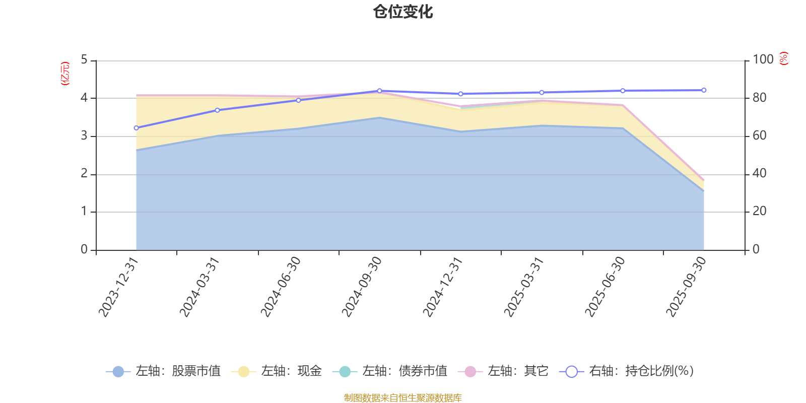 据定期报告数据统计,成立以来平均股票仓位为79.39%,同类平均为85.66%。2025年三季度末基金达到84.35%的最高仓位,2023年末最低,为64.44%。