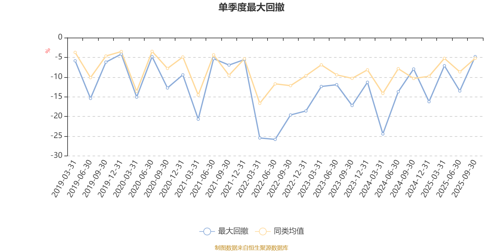 通过所选区间该基金净值增长率分位图,可以观察该基金与同类基金业绩比较情况。图为坐标原点到区间内某时点的净值增长率在同类基金中的分位数。