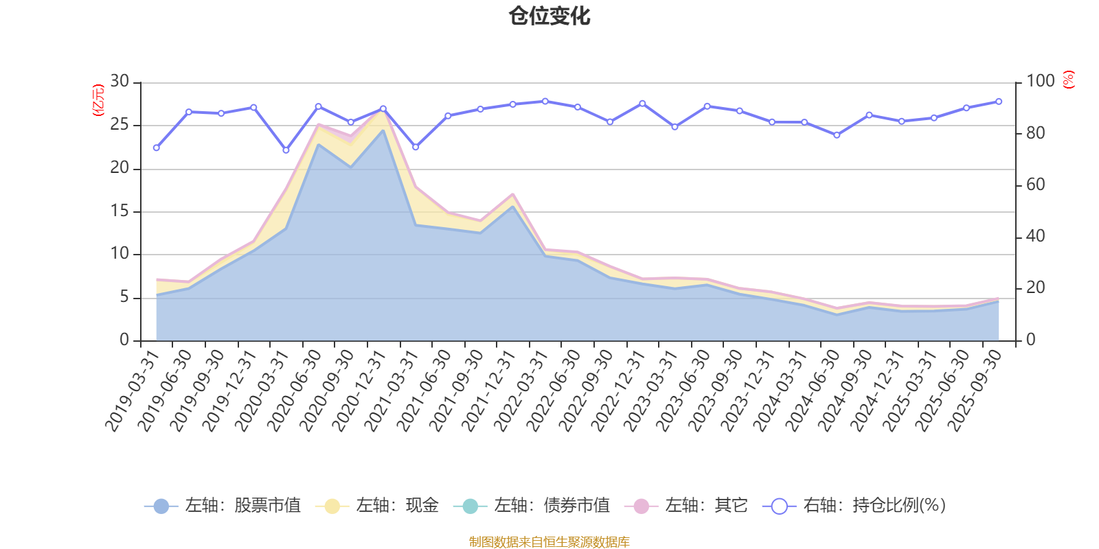 据定期报告数据统计,近三年平均股票仓位为87.04%,同类平均为72.35%。2022年一季度末基金达到92.69%的最高仓位,2020年一季度末最低,为73.76%。