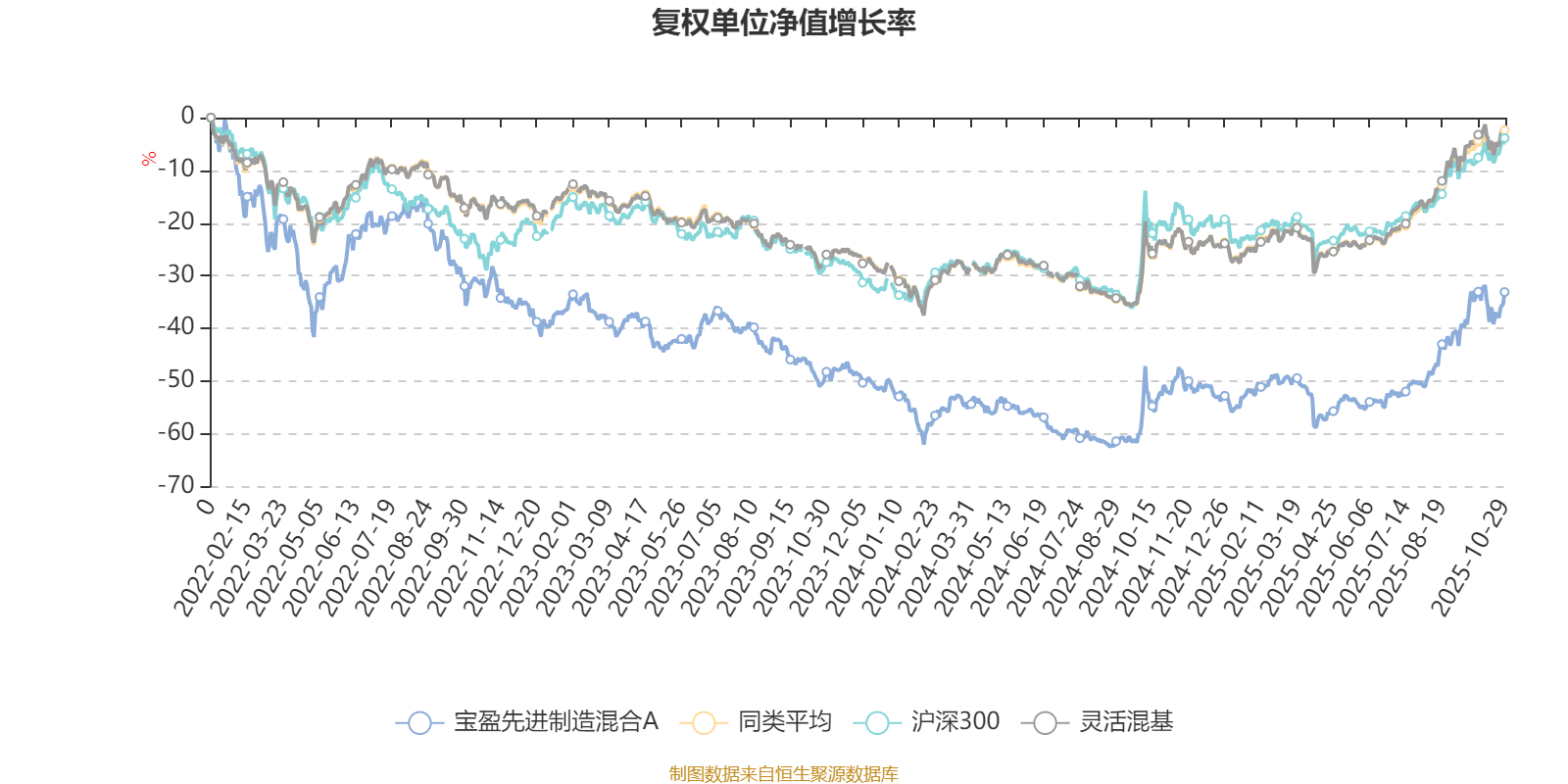 截至10月29日,宝盈先进制造混合A近三个月复权单位净值增长率为34.20%,位于同类可比基金135/1287;近半年复权单位净值增长率为51.69%,位于同类可比基金174/1287;近一年复权单位净值增长率为38.57%,位于同类可比基金319/1287;近三年复权单位净值增长率为1.56%,位于同类可比基金1010/1286。