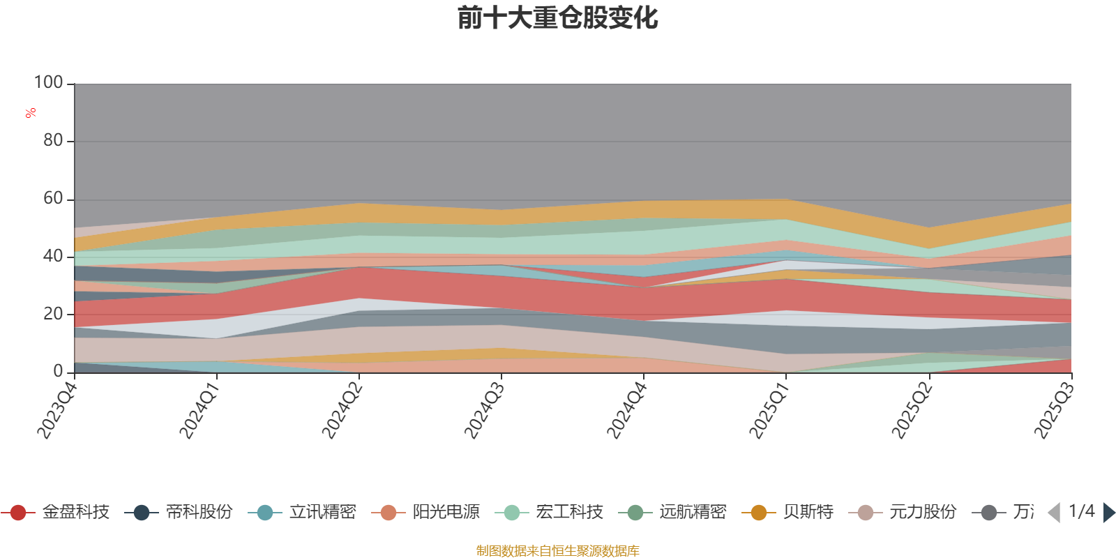 该基金持股集中度较高。截至2025年三季度末,基金十大重仓股分别是宁德时代、恒立液压、隆盛科技、拓普集团、双环传动、三花智控、金盘科技、万润新能、爱柯迪、联德股份。