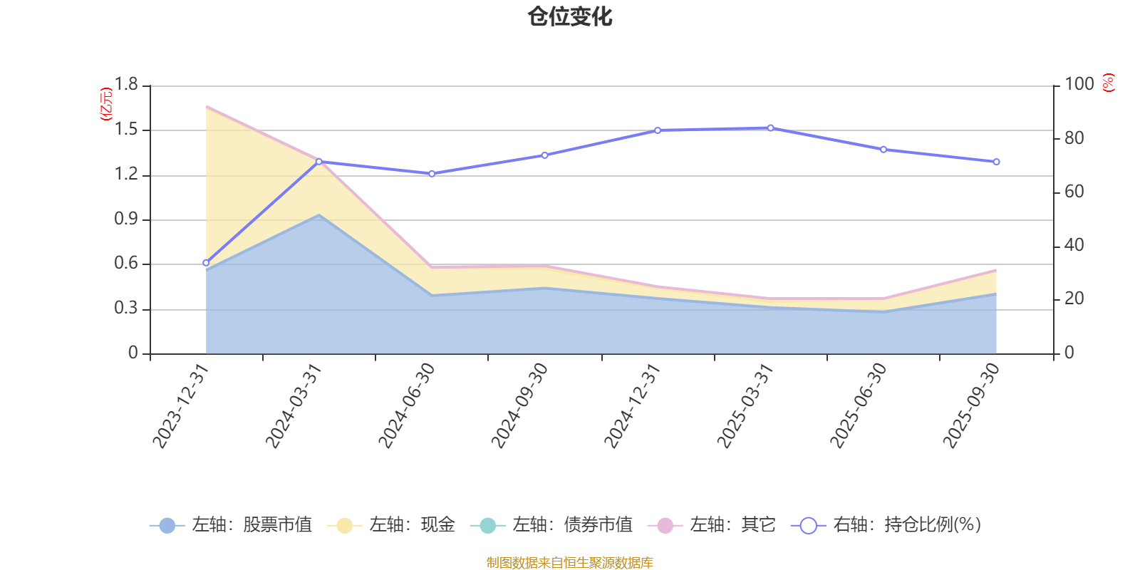 据定期报告数据统计,成立以来平均股票仓位为70.23%,同类平均为83.73%。2025年一季度末基金达到84.18%的最高仓位,2023年末最低,为33.92%。