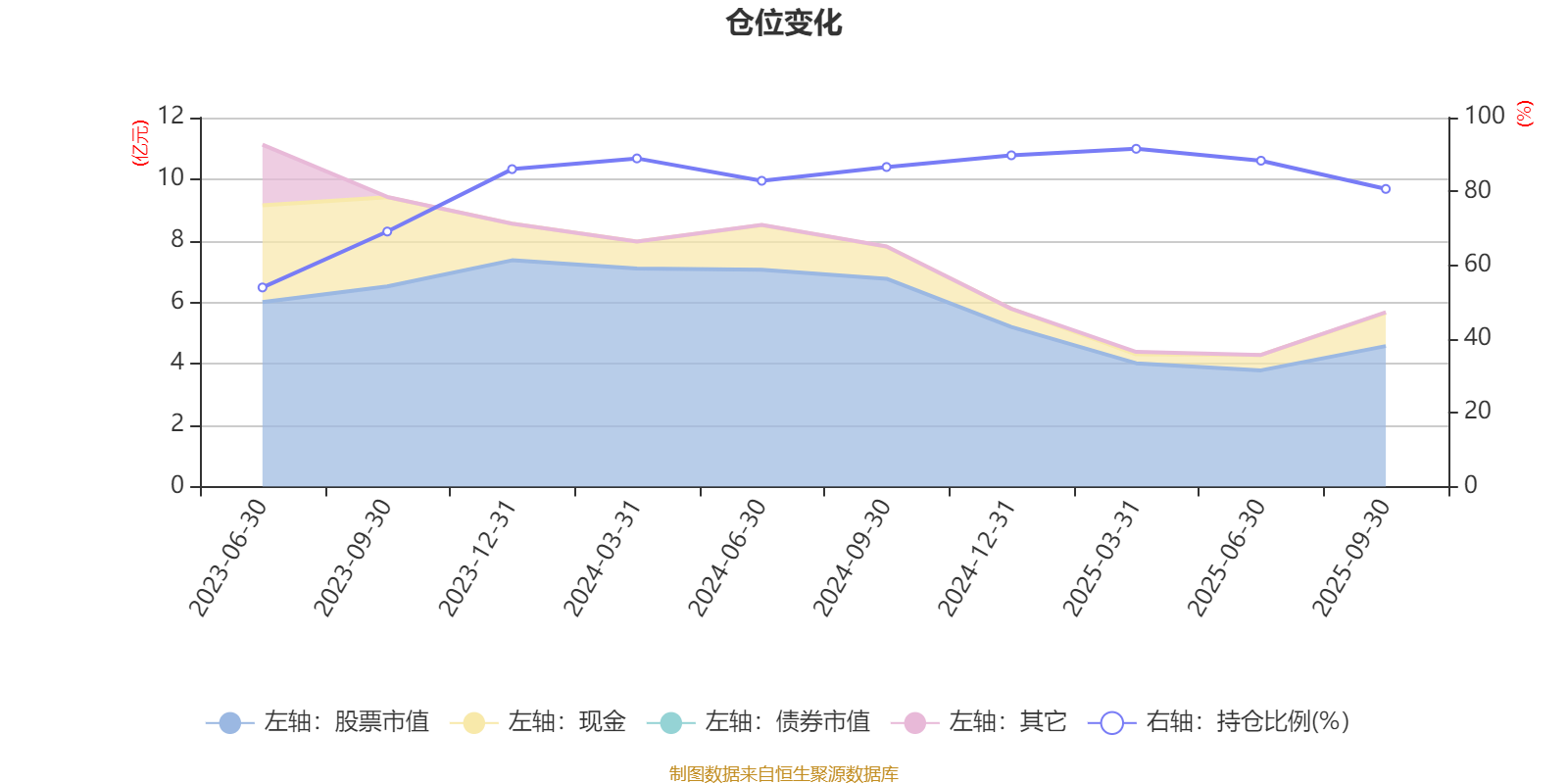 据定期报告数据统计,成立以来平均股票仓位为81.79%,同类平均为86.77%。2025年一季度末基金达到91.55%的最高仓位,2023年上半年末最低,为53.96%。