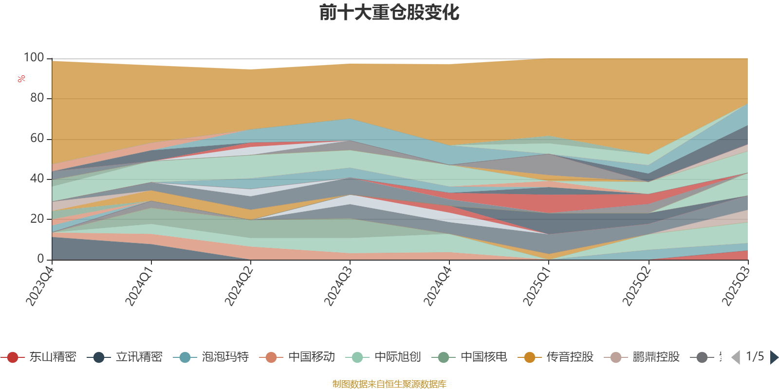 截至2025年三季度末,基金十大重仓股分别是深南电路、沪电股份、新易盛、中际旭创、天孚通信、腾讯控股、鹏鼎控股、东山精密、泡泡玛特、胜宏科技。