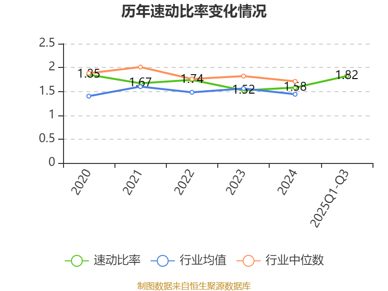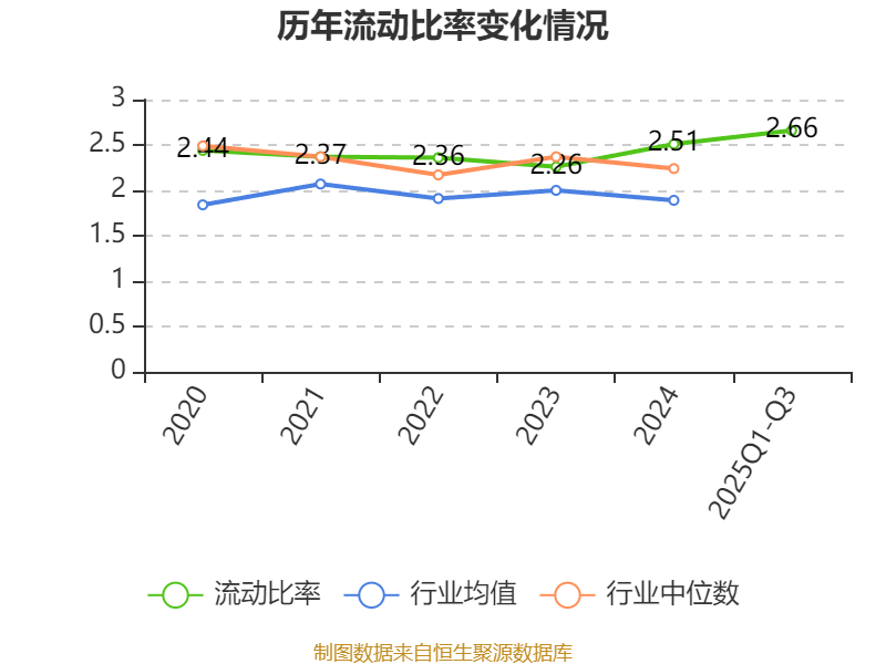 2025年前三季度,公司流动比率为2.66,速动比率为1.82。