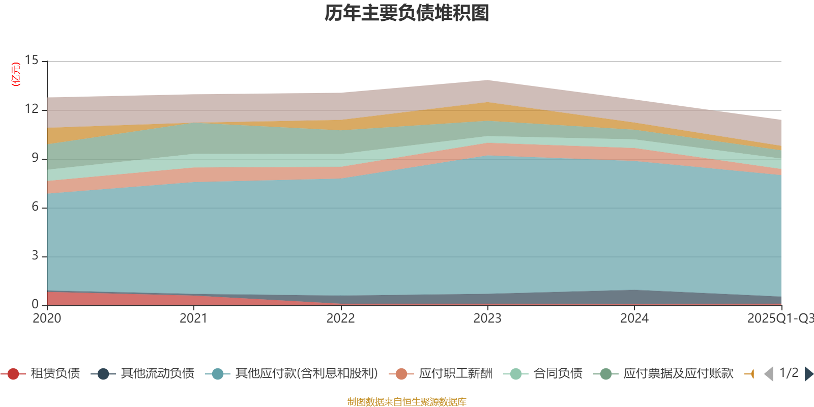 负债重大变化方面,截至2025年三季度末,公司其他流动负债较上年末减少49.83%,占公司总资产比重下降0.8个百分点;应付职工薪酬较上年末减少52.84%,占公司总资产比重下降0.78个百分点;应交税费较上年末增加58.41%,占公司总资产比重上升0.3个百分点;短期借款较上年末减少38.07%,占公司总资产比重下降0.3个百分点。