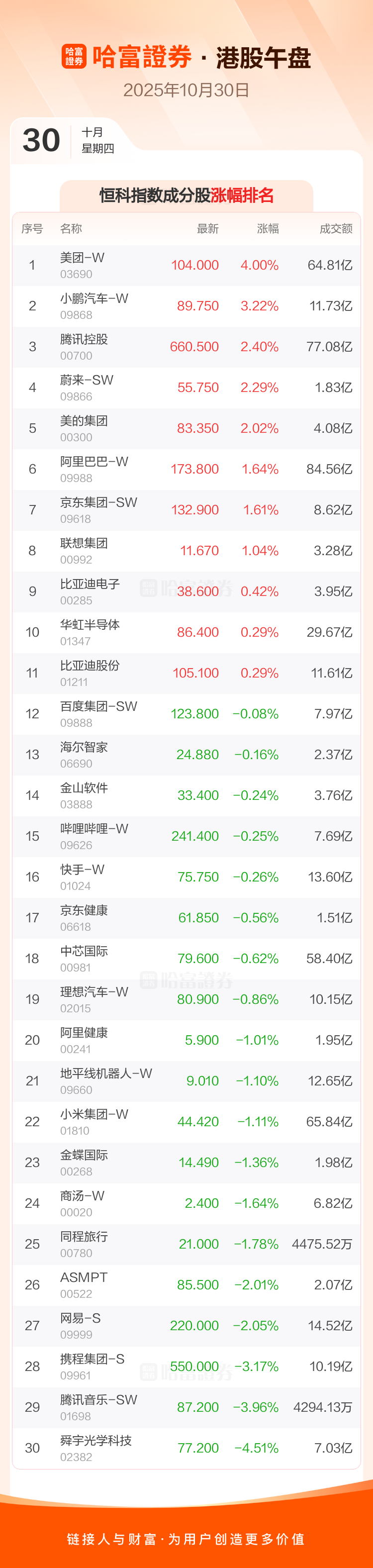 港股午评:恒生指数涨0.54% 恒生科技指数涨0.31%