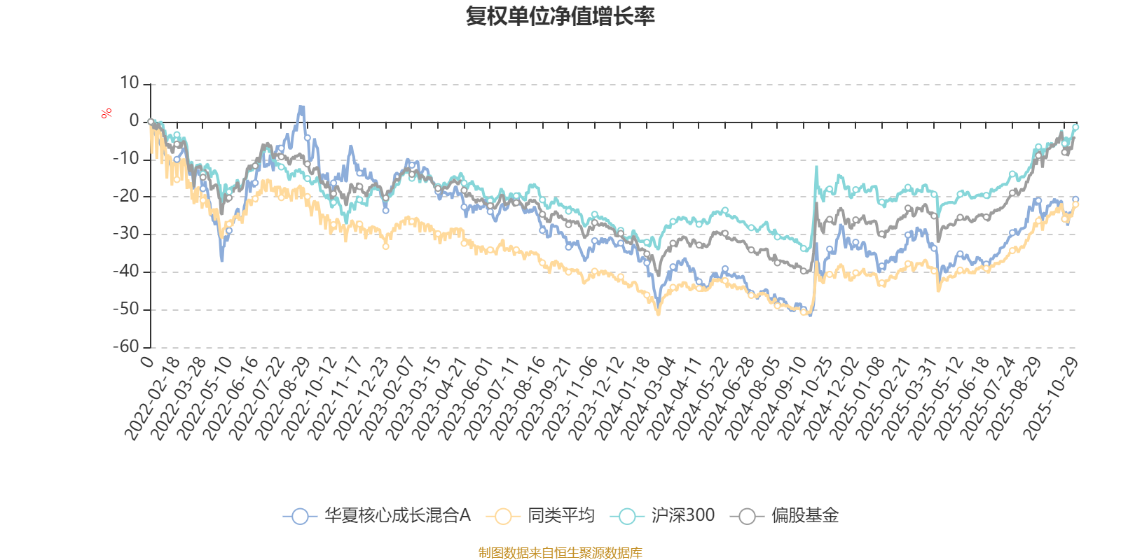 截至10月29日,华夏核心成长混合A近三个月复权单位净值增长率为10.96%,位于同类可比基金409/621;近半年复权单位净值增长率为28.17%,位于同类可比基金349/621;近一年复权单位净值增长率为21.68%,位于同类可比基金420/611;近三年复权单位净值增长率为-5.68%,位于同类可比基金461/518。
