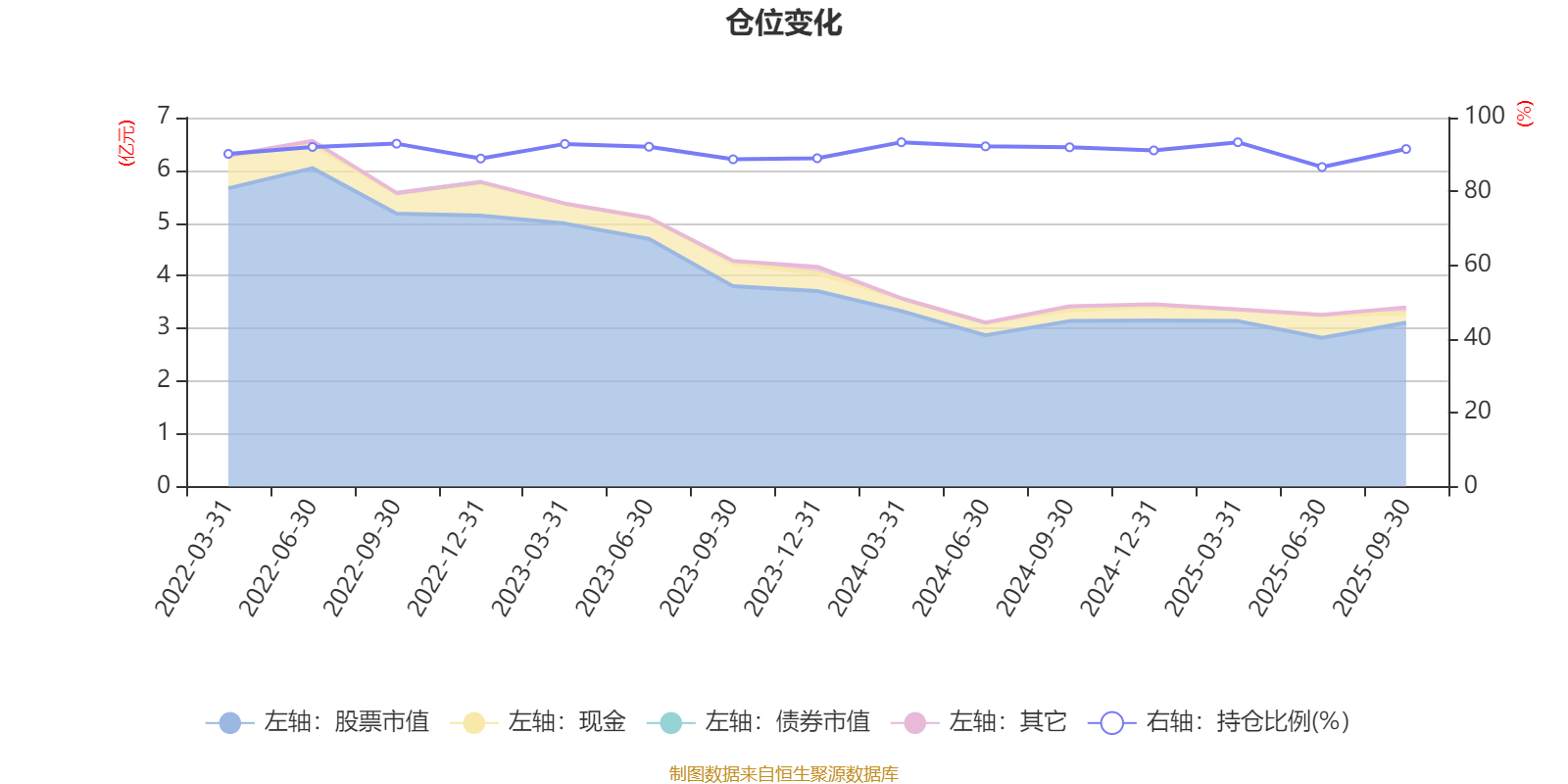 据定期报告数据统计,近三年平均股票仓位为90.96%,同类平均为85.66%。2024年一季度末基金达到93.32%的最高仓位,2025年上半年末最低,为86.6%。