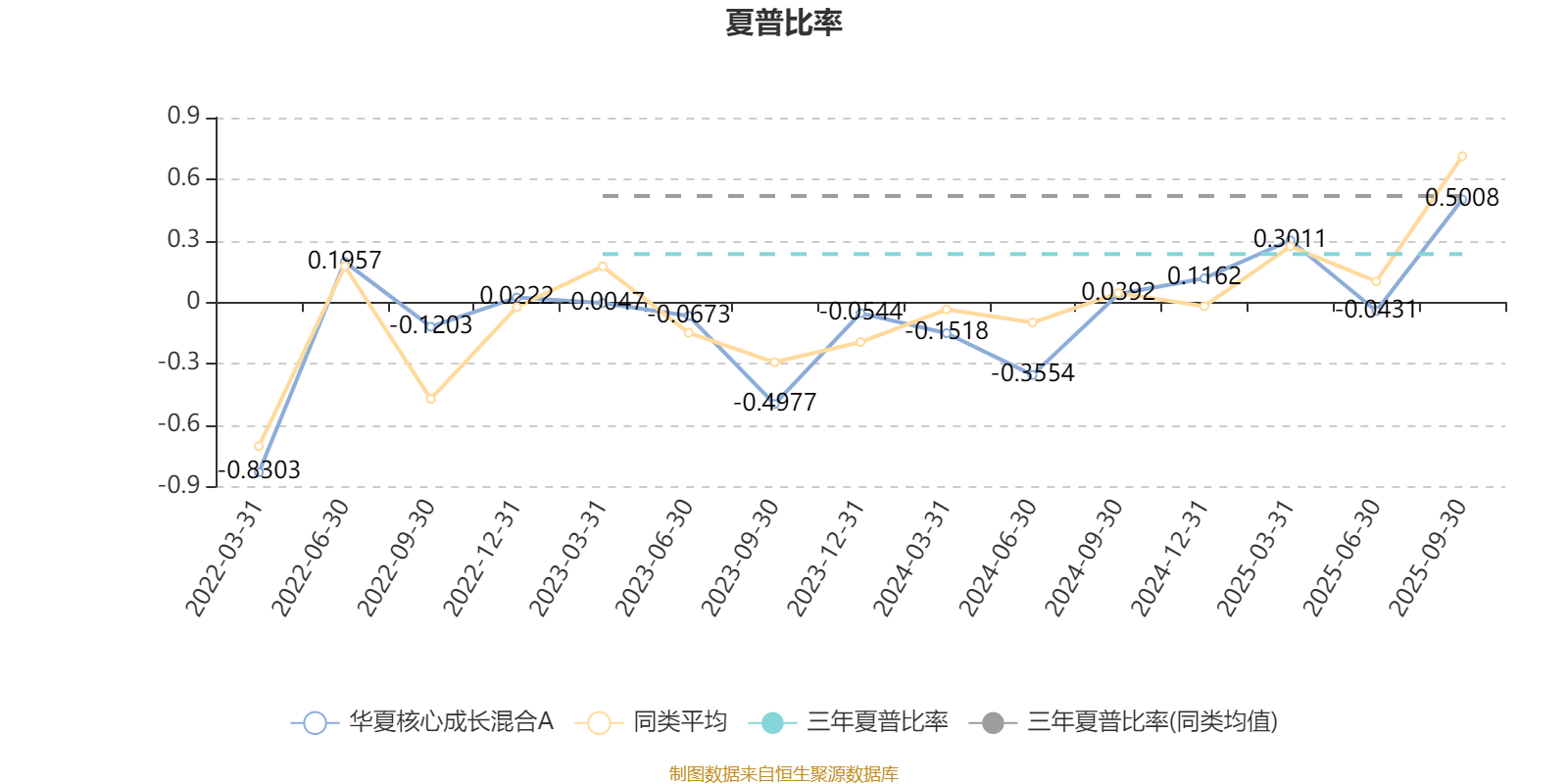 截至9月30日,基金近三年夏普比率为0.2342,位于同类可比基金427/518。