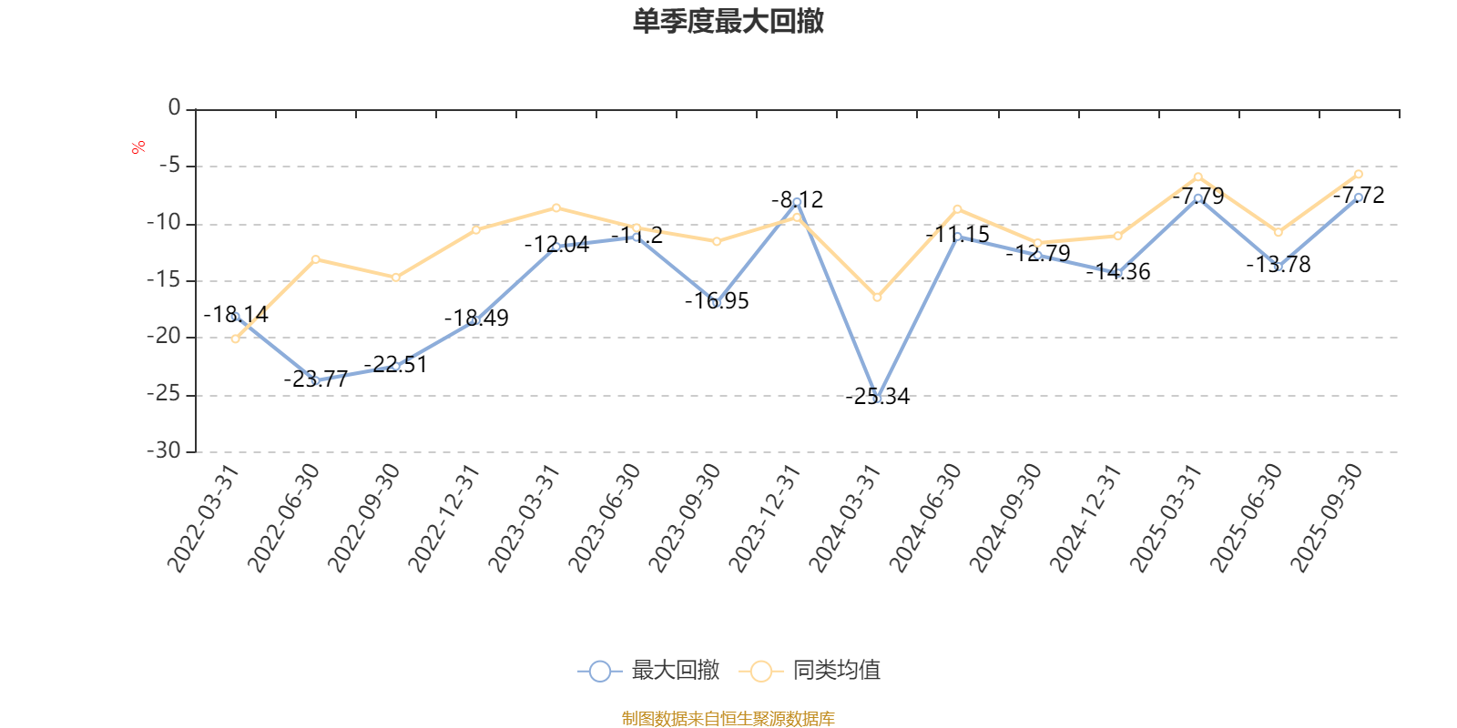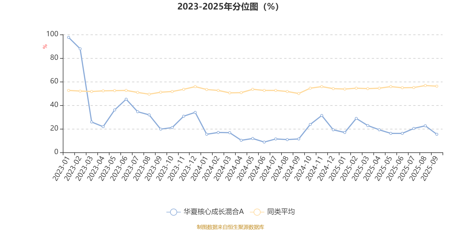 通过所选区间该基金净值增长率分位图,可以观察该基金与同类基金业绩比较情况。图为坐标原点到区间内某时点的净值增长率在同类基金中的分位数。