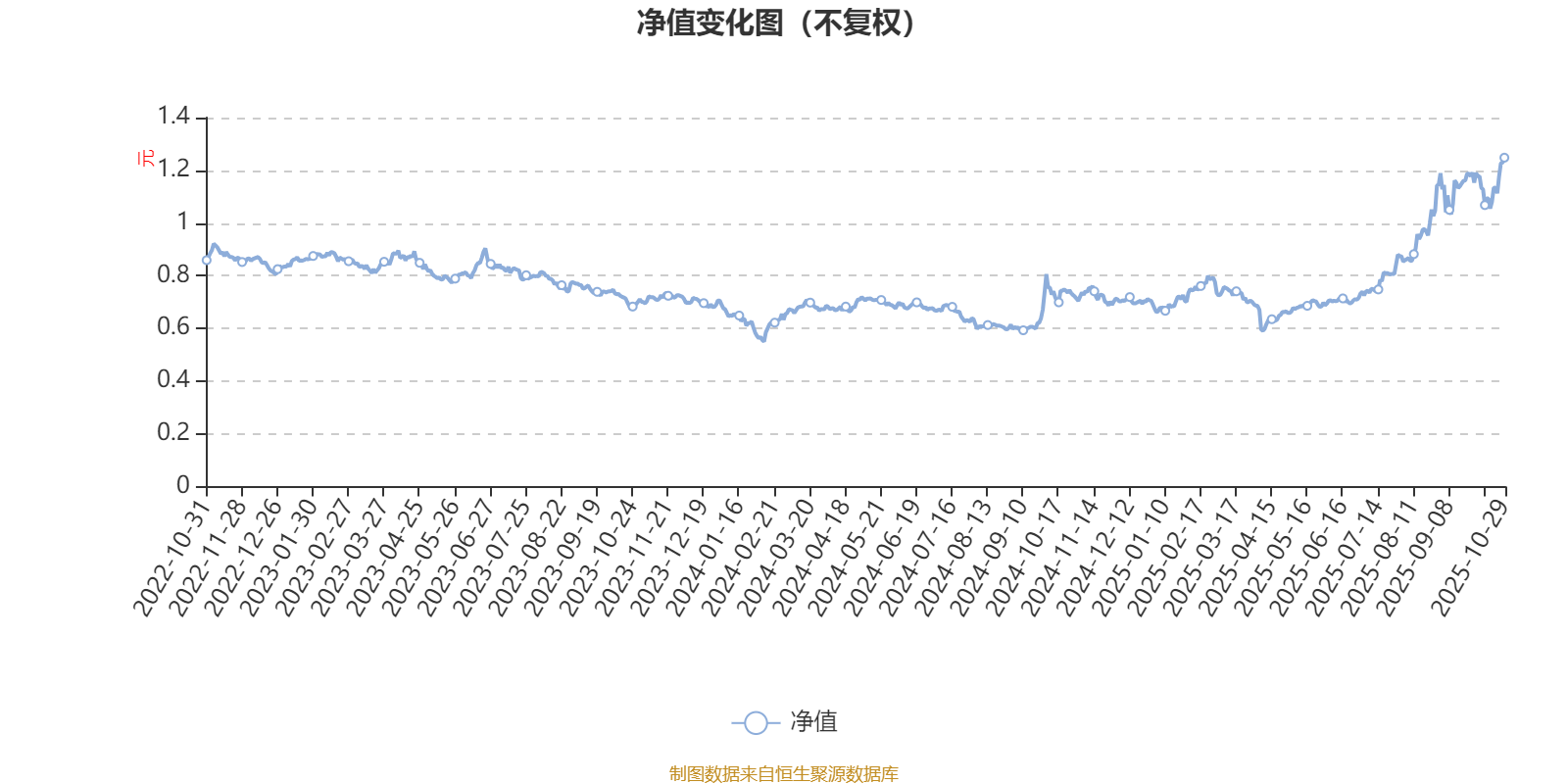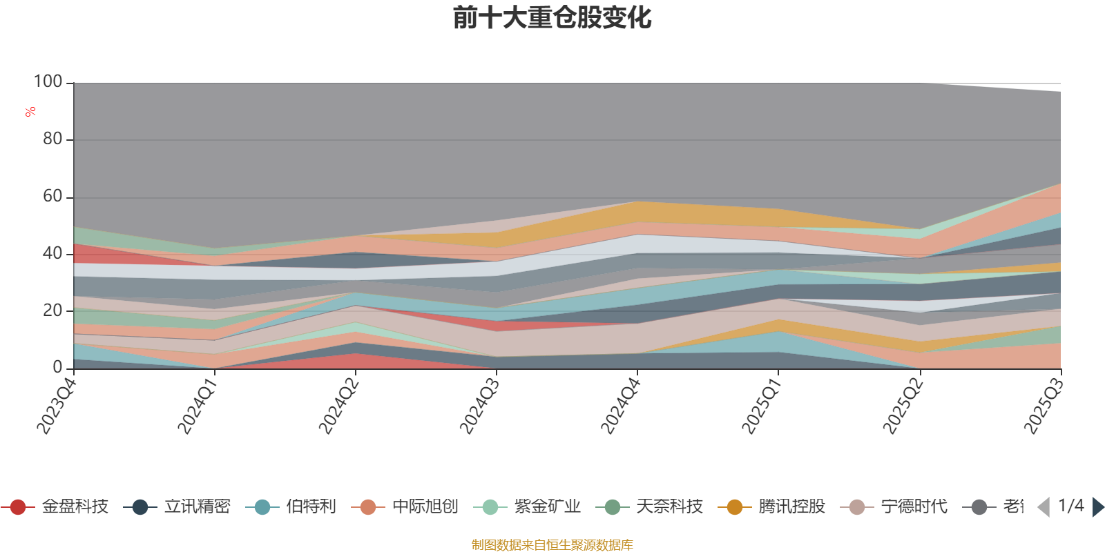 截至2025年三季度末,基金十大重仓股分别是新易盛、中际旭创、寒武纪、沪电股份、宁德时代、天奈科技、工业富联、生益科技、天孚通信、中芯国际。
