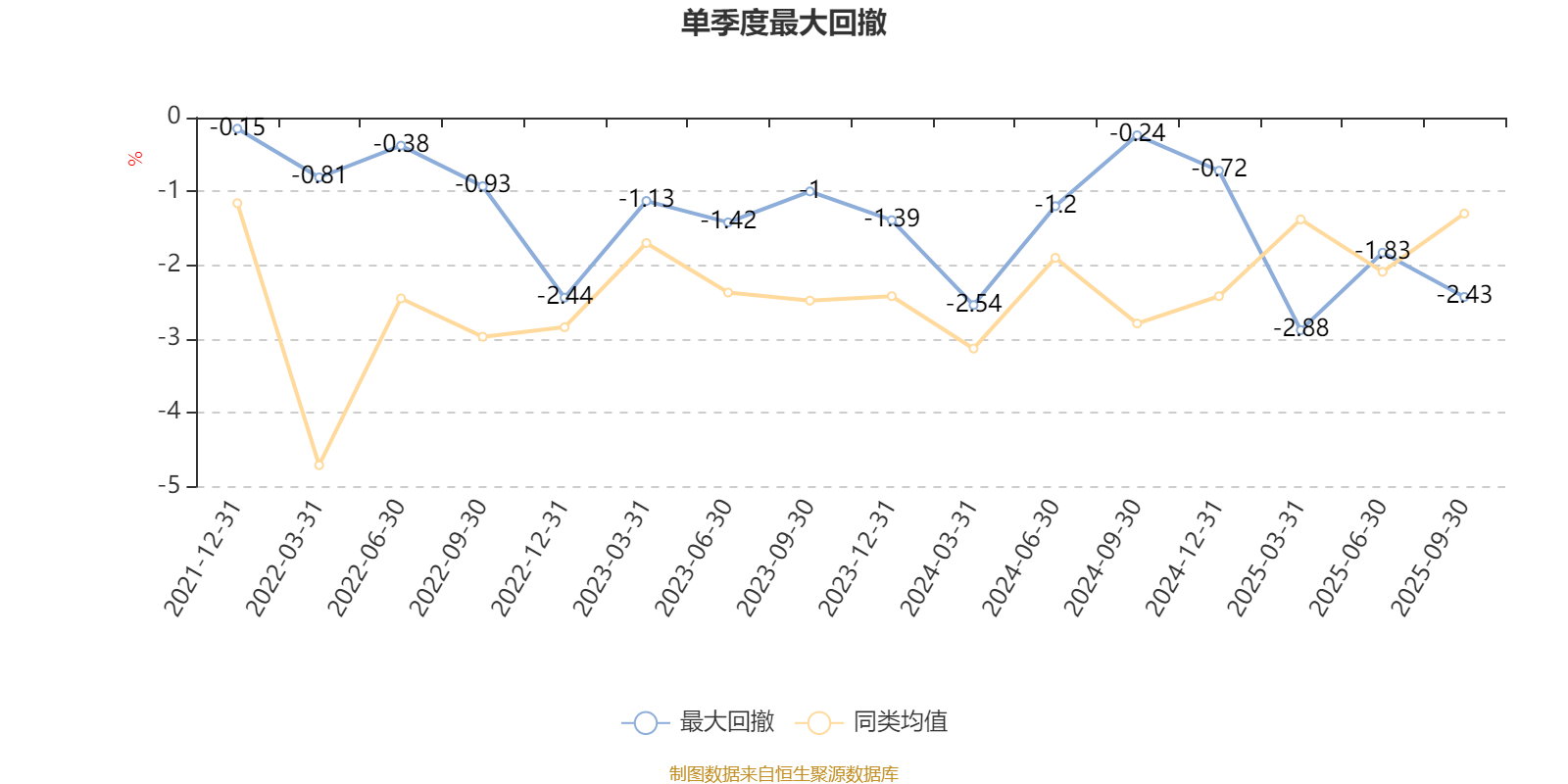 截至10月29日,基金近三年最大回撤为4.76%,同类可比基金排名173/534。单季度最大回撤出现在2025年一季度,为2.88%。
