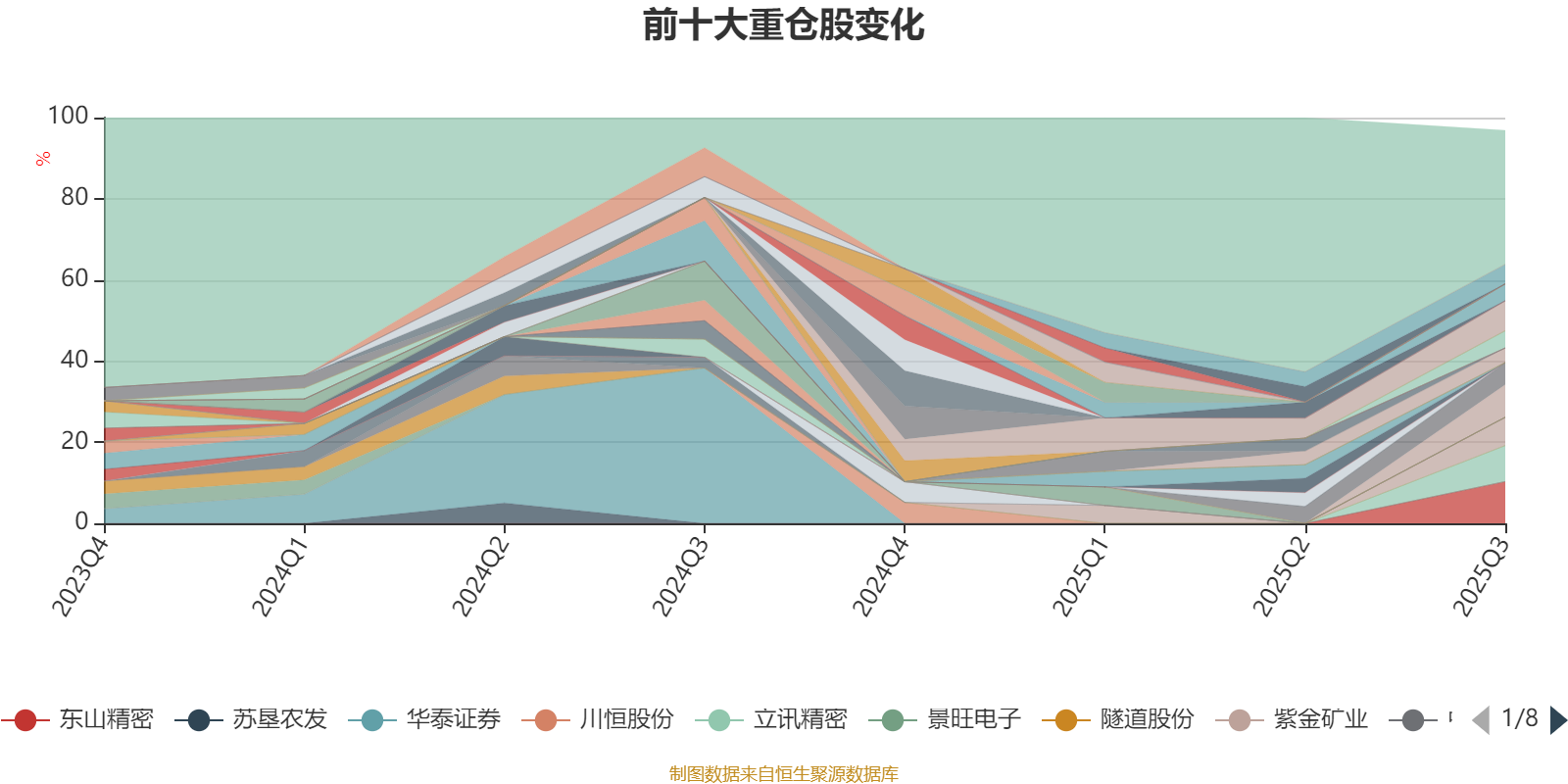 截至2025年三季度末,基金十大重仓股分别是东山精密、立讯精密、德昌电机控股、中芯国际、紫金矿业、芯原股份、兆易创新、海光信息、阿里巴巴-W、寒武纪。