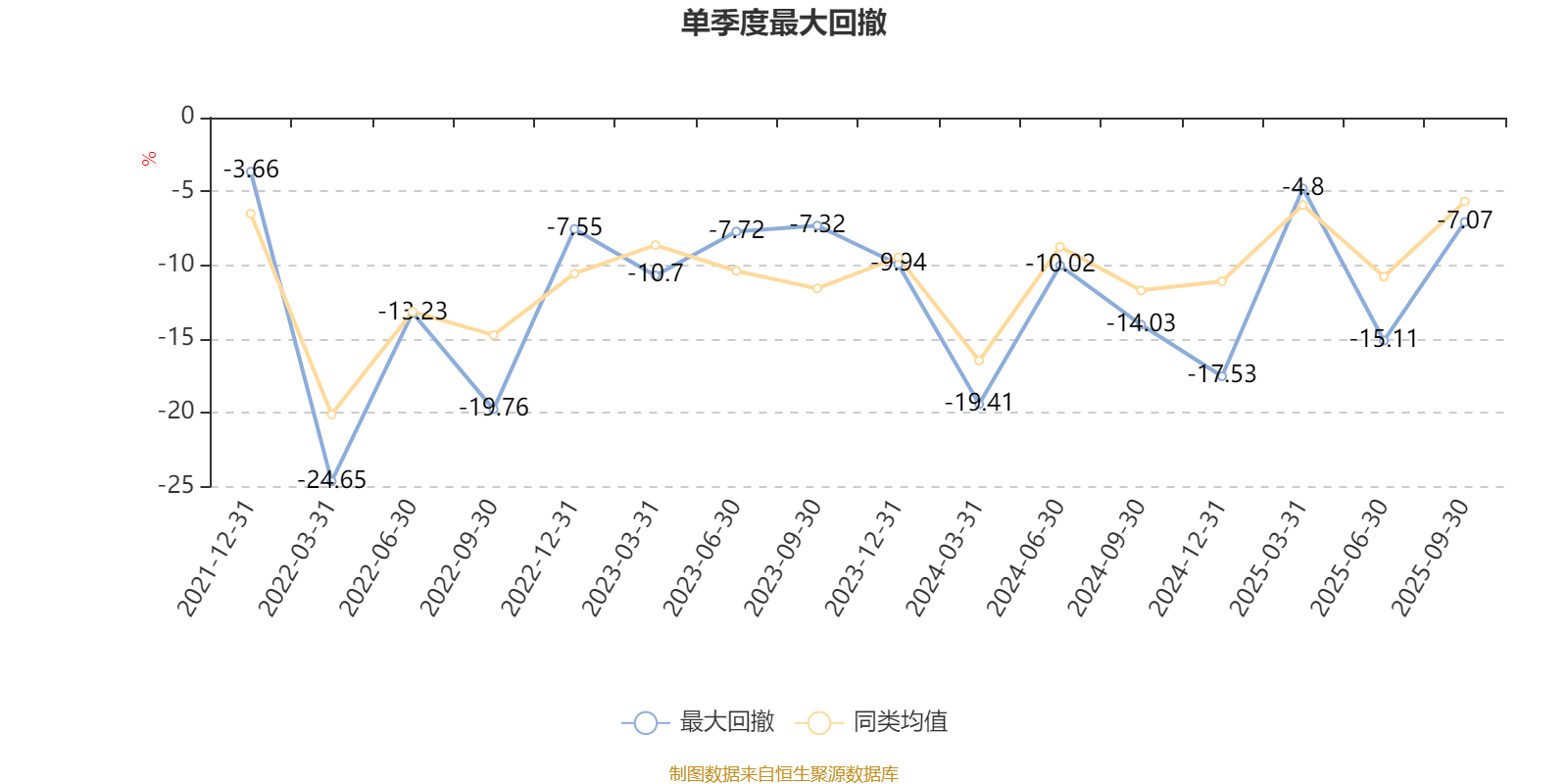 截至10月29日,基金近三年最大回撤为34.76%,同类可比基金排名236/513。单季度最大回撤出现在2022年一季度,为24.65%。