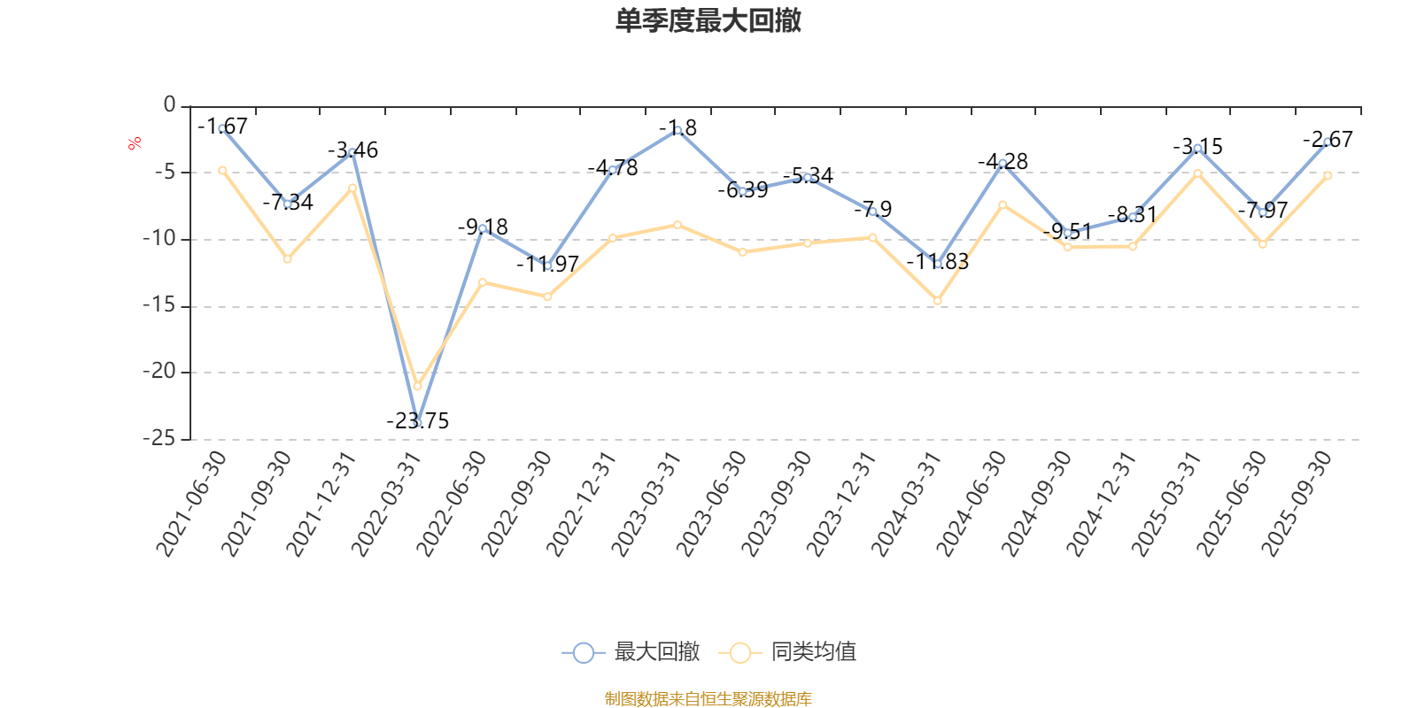 截至10月29日,基金近三年最大回撤为22.49%,同类可比基金排名14/124。单季度最大回撤出现在2022年一季度,为23.75%。