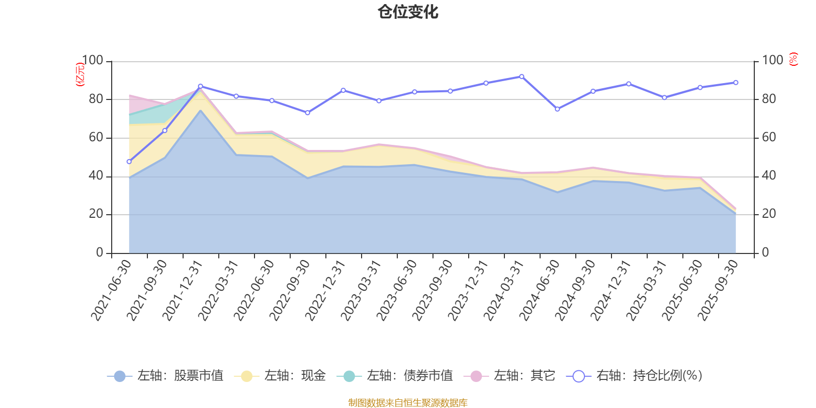 据定期报告数据统计,近三年平均股票仓位为84.77%,同类平均为86.15%。2024年一季度末基金达到92.01%的最高仓位,2021年上半年末最低,为47.72%。