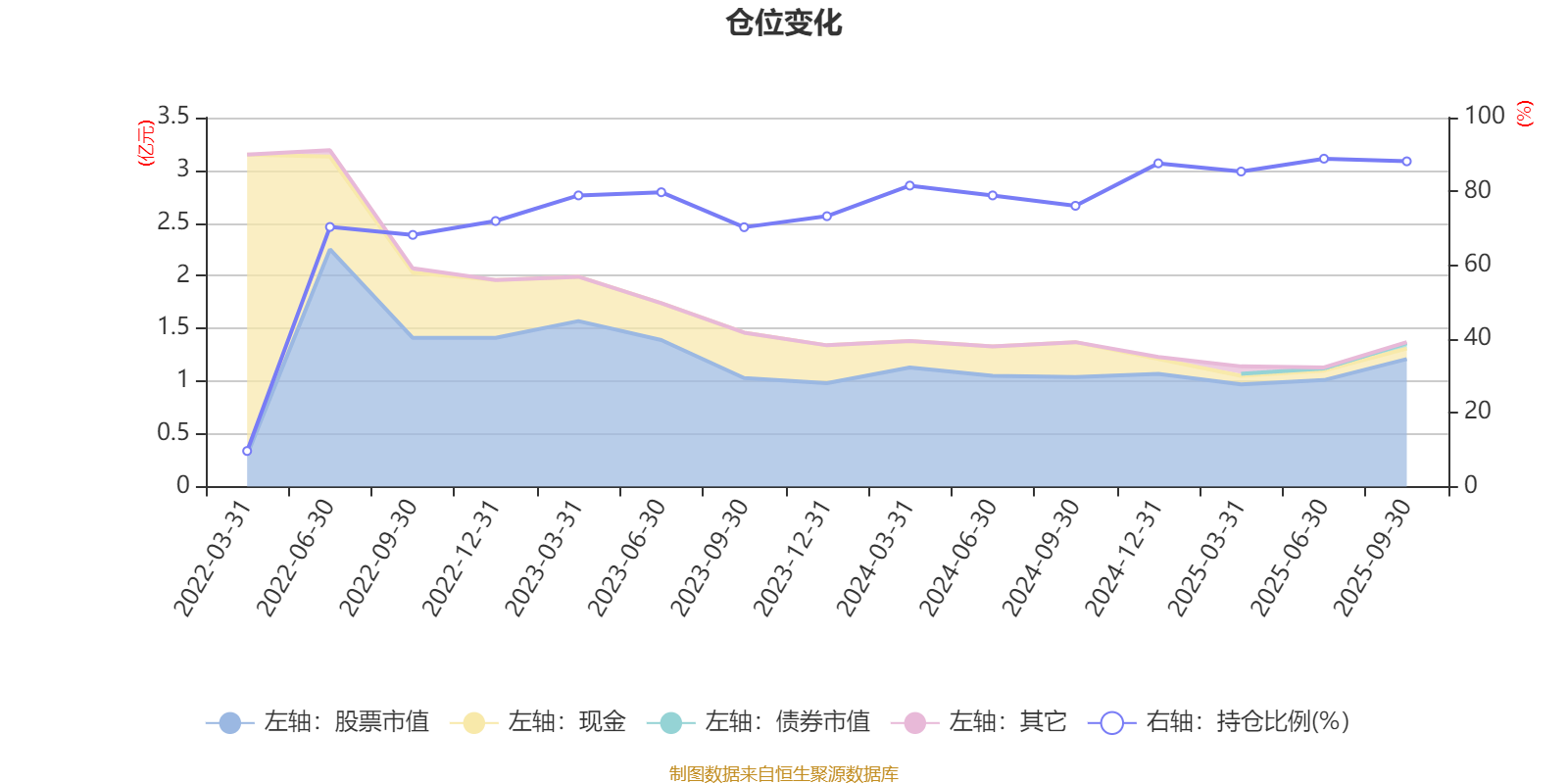 据定期报告数据统计,近三年平均股票仓位为80.07%,同类平均为85.66%。2025年上半年末基金达到88.87%的最高仓位,2022年一季度末最低,为9.64%。